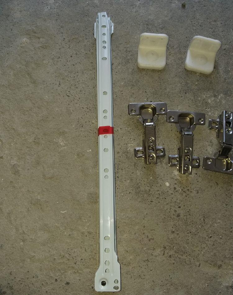 Balamale drepte 1 leu buc, agatatori corpuri suspendat 1leu buc, șine sertar pe role 45 cm 10lei set.