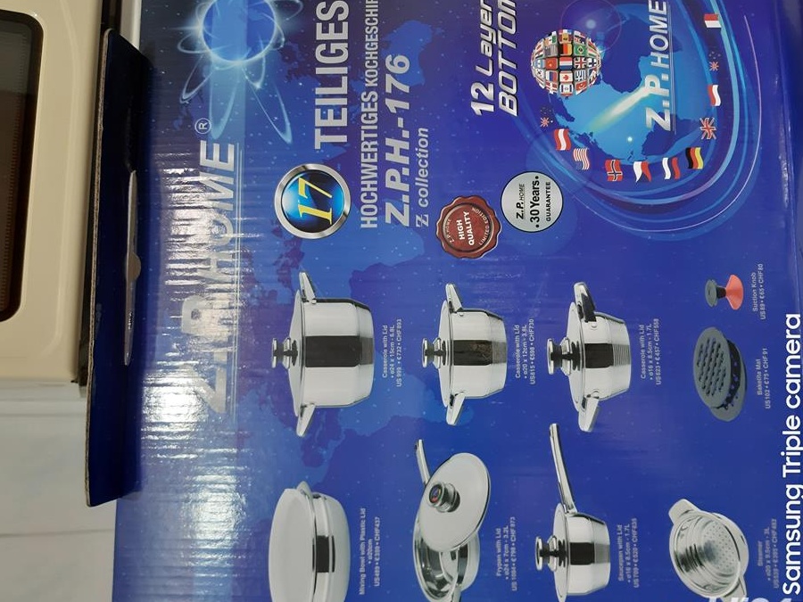 Oalele sunt asezate in cutia originala nu a fost folosita niciodata are calitati deosebite si un dizain frumos. Toate oalele au fund confectionat din otel inoxidabil chirurgical cu 11 straturide conductibilitate termica. Gatire sanatoasa, prepara alimentele cu putina apa si putin ulei, special concepute pentru gatirea dietelor in care alimentele nu trebuiesc sarate. Contine:oala cu capac pentru sosuri: 16x8 cm. Oala cu capac 16x8 cm. Oala cu capac 20x10 cm.Oala cu capac 24x14 cm.Tigaie cu capac 24x6,5 cm. Bol 20x7 cm. Suporti bachelita =2 bucati. Ustensila pentru aspirare.Sursa de caldura gaz si electric.