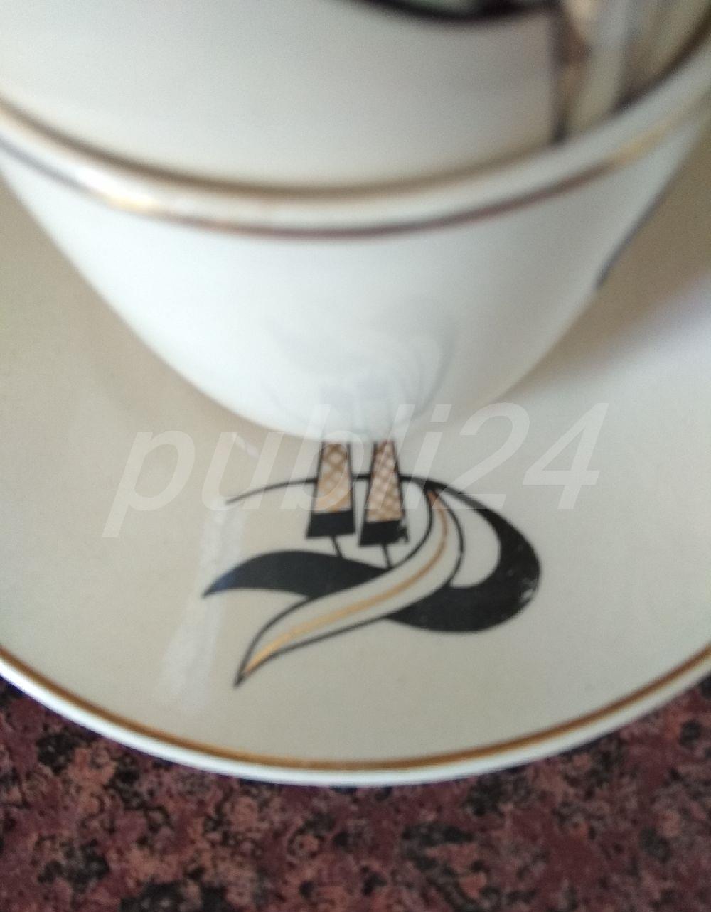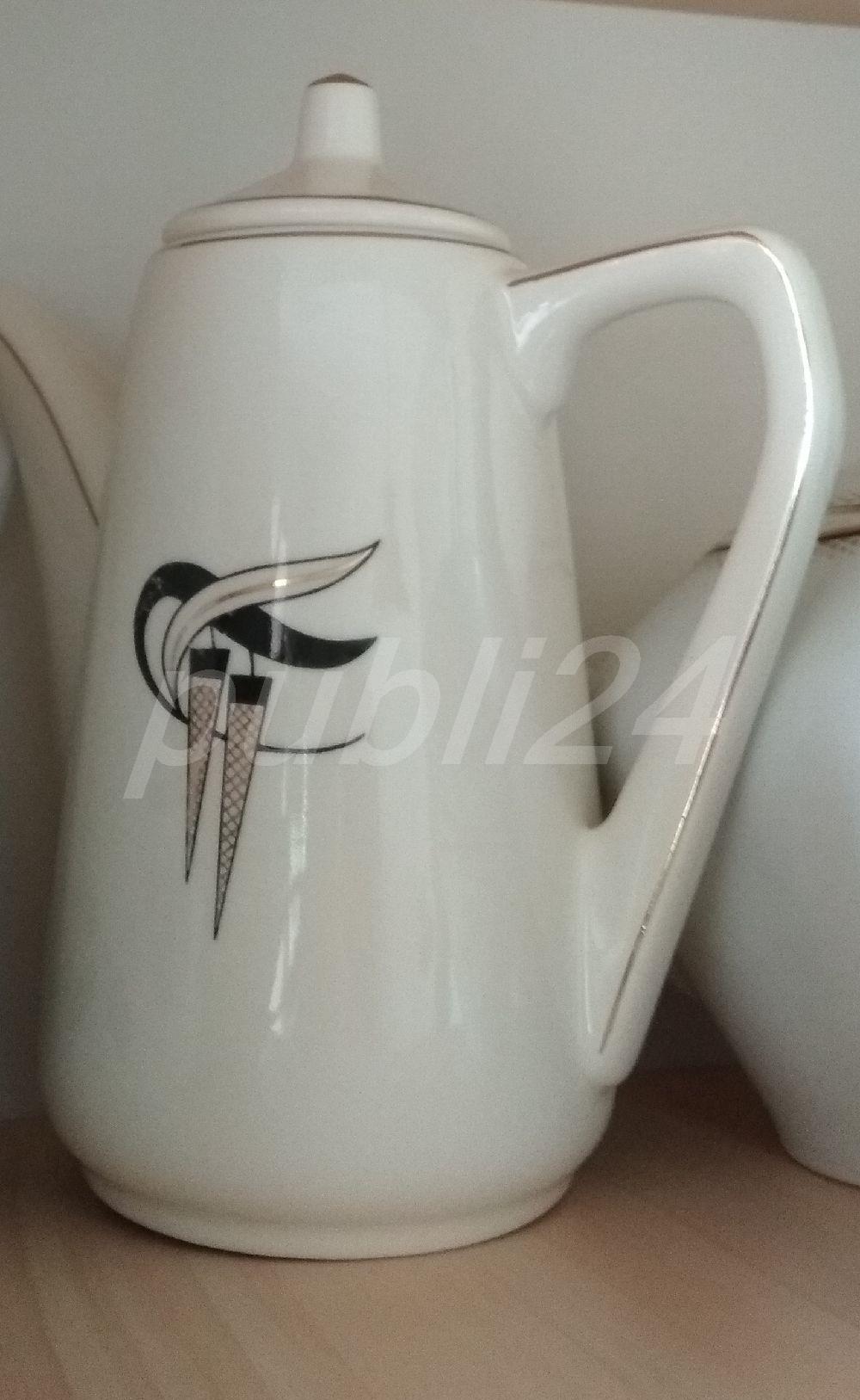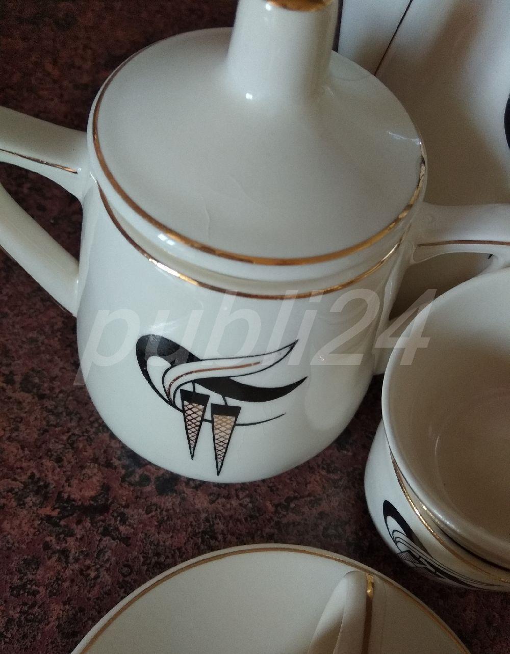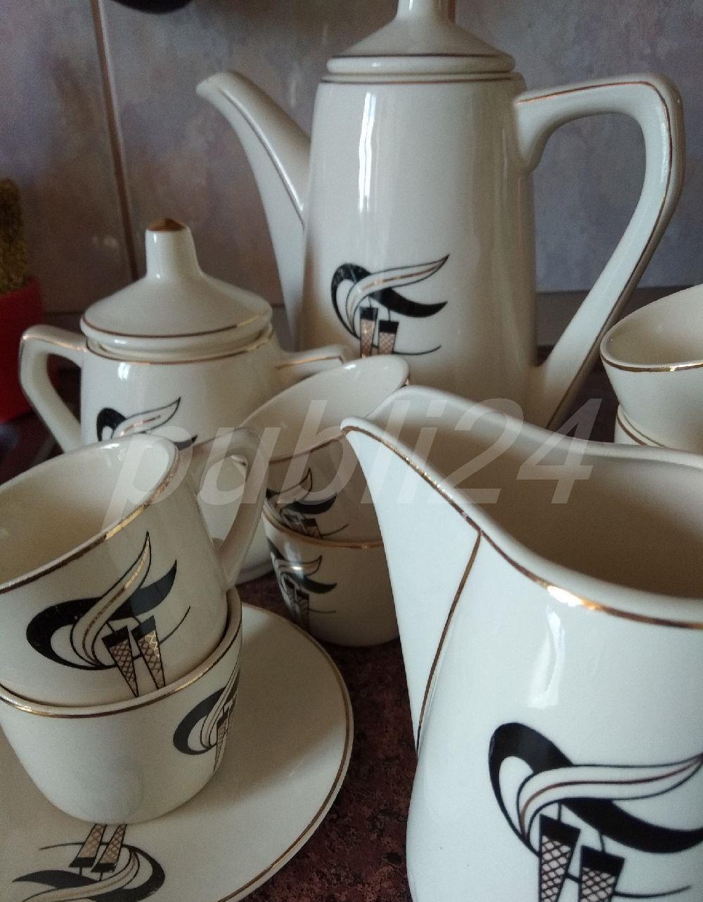 Set deosebit. Model VINTAGE, de colecție (are peste 70 ani).15 piese:6 farfurioare,6 cești(80 ml),cană pentru turnat cafea,zaharniță,cană pentru turnat laptele.În stare impecabilă.Trimit colet în țară.Mulțumesc