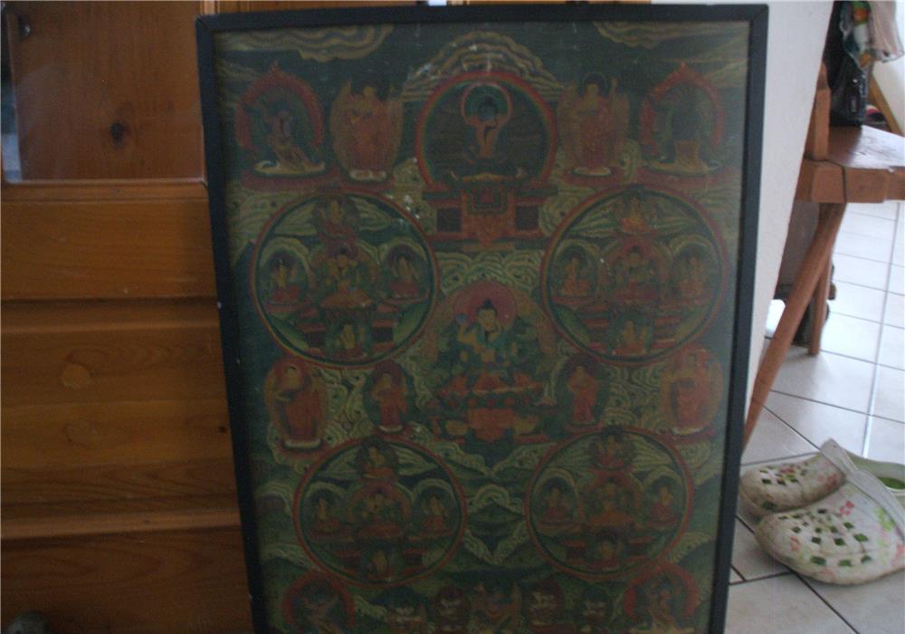 Thangka inramata sub sticla,litografie pe hartie,dimensiuni 45/66 cm,stare cum se vede.la pretul de achizitie se mai adauga 15 lei taxe de transport prin posta romana.orice alte detalii pe mail sau telefon.