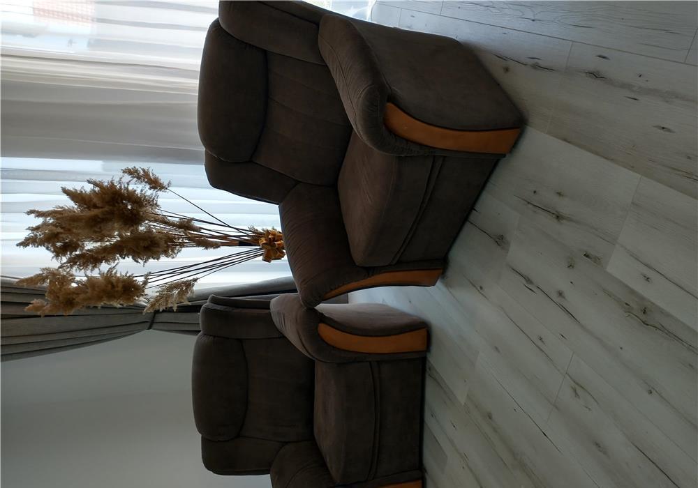 canapea extensibila cu lada de depozitare și două fotolii