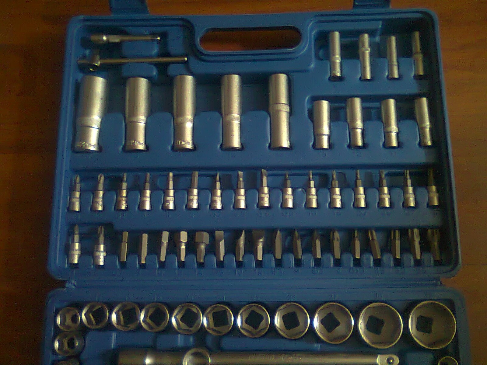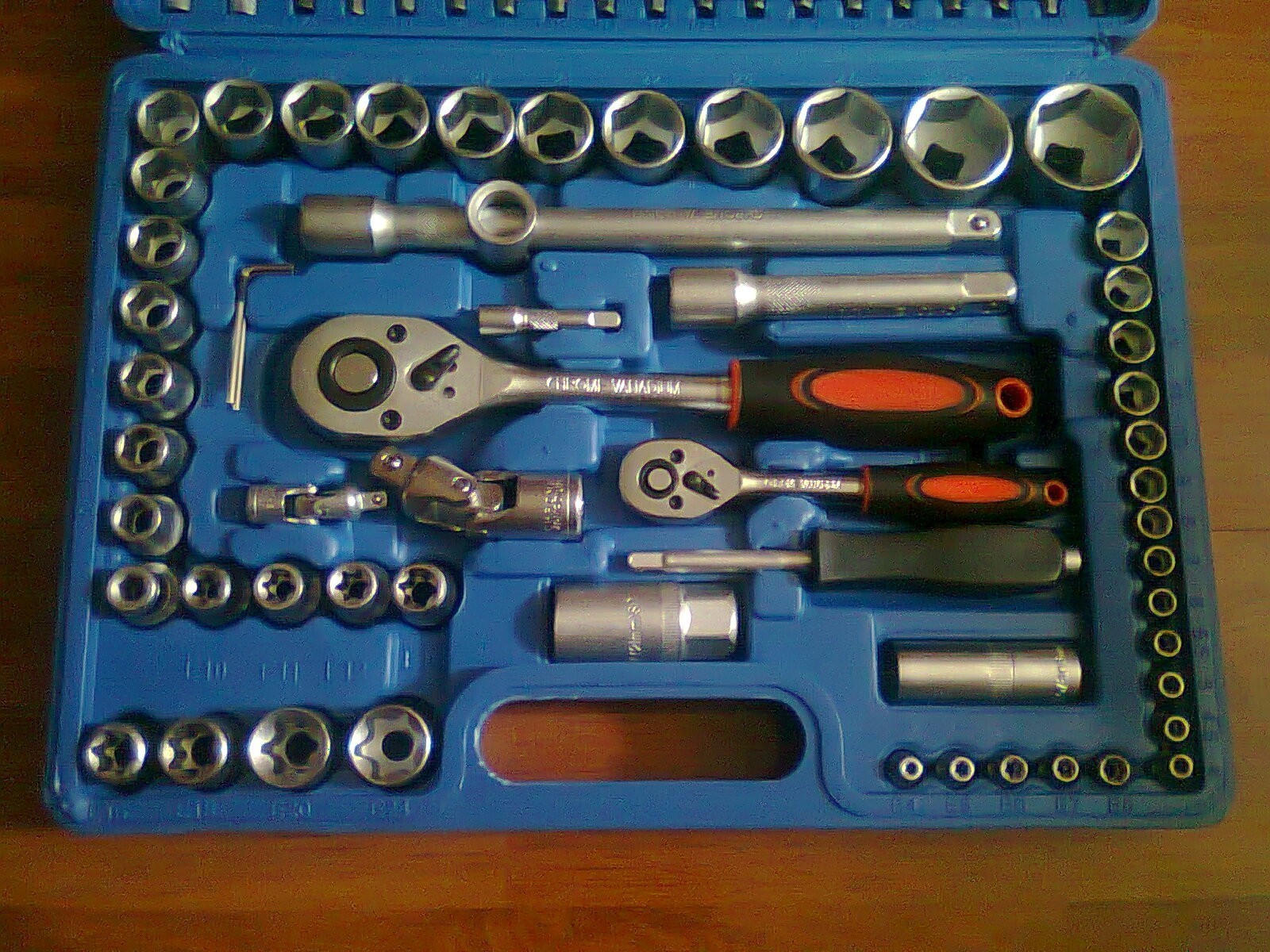 trusa scule auto 108 piese CONTENTS -18PCS-1/4 DR.BIT SOCKETS-SL 4/5.5/6.5 PH1,2 PZ1,2HEX3/4/5/6/T8/10/15/20/25/27/30 -13PCS-1/4DR. SOCKETS-4/4.5/5/5.5/6/7/**********12/13/14mm -8PCS-1/4DR.DEEP SOCKETS-6/7/**********12/13MM -2PCS-1/4DR.EXTENSION BARS-2&3 -1PC - 1/4DR.UNIVERSAL JOINT -1PC-1/4QUICK RATCHET HANDLE -5PCS-1/4DR.TORX SOCKETS-E4/E5/E6/E7/E8 -1PC-1/4DR.SLIDING T BAR -1PC-1/4DR.SPINNER HANDLE-6 -5PCS-1/2DR.DEEP SOCKETS-14,15,17.19,22mm -2PCS-1/2DR.EXTENSION BARS-5&10 -1PC-1/2DR.UNIVERSAL JOINT -8PCS-1/2DR.TORX SOCDETS-E10/E11/E12/E14/E16/E18/E 20/E24 -1PC-1/2DR.QUICK RATCHET HANDLE -2PCS-1/2DR.SPARK PLUG SOCKETS-16mm&21mm -17PCS-1/2DR.SOCKETS-10/11/12/13/14/15/16/17/*********21/22/24/27/30/32mm -1PC-3-WAY ADAPTOR -3PCS-HEX KEY WRENCHES-1.5/2/2,5mm -17PCS-BITS(30L)-SL8/10/12 T40/45/50/55/60 PH3/4 PZ3/4 HEX7/***********-1PC-BIT HOLDER -1PC-BLOW CASE