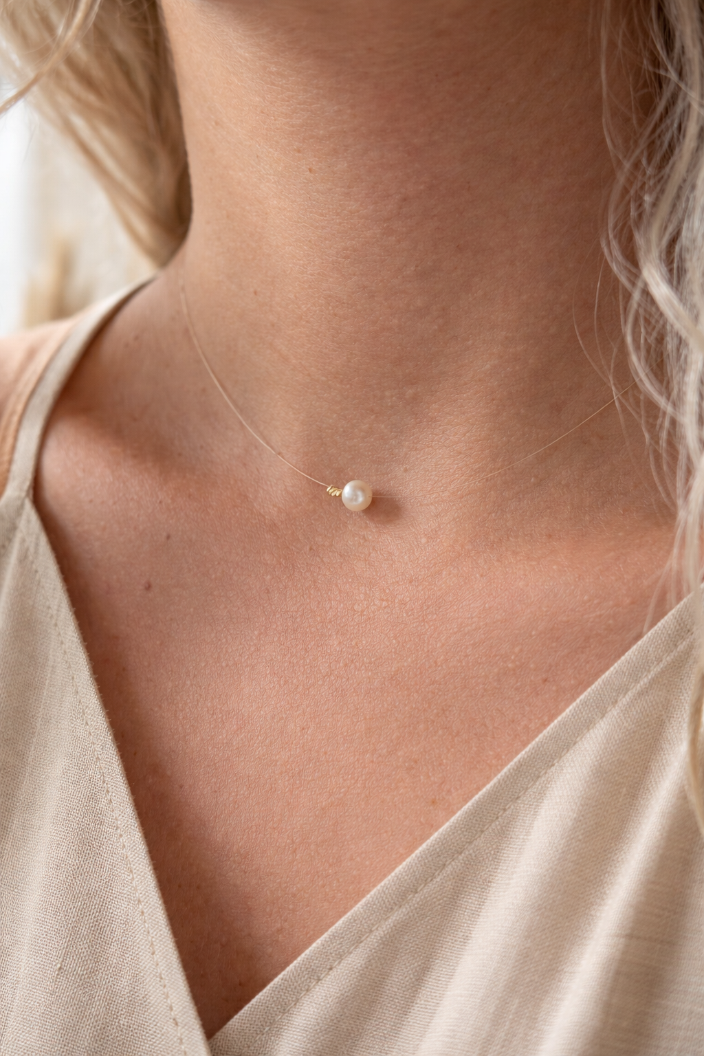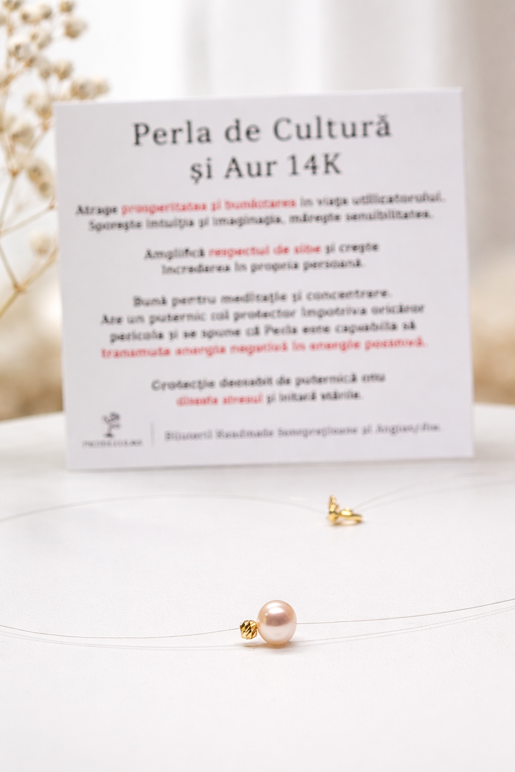 Colier pe fir transparent cu bila de aur 14k si perla de cultura. Lungimea se realizeaza la cerere. Sistemul de inchidere din argint.