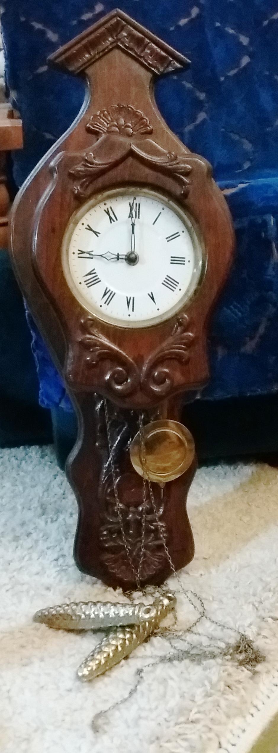 Vand ceas pendula cu contragreutati Aradora cu intarsii de lemn scluptat, cu doua greutati, foarte ingrijit, functioneaza 40 ore fara intoarcere.