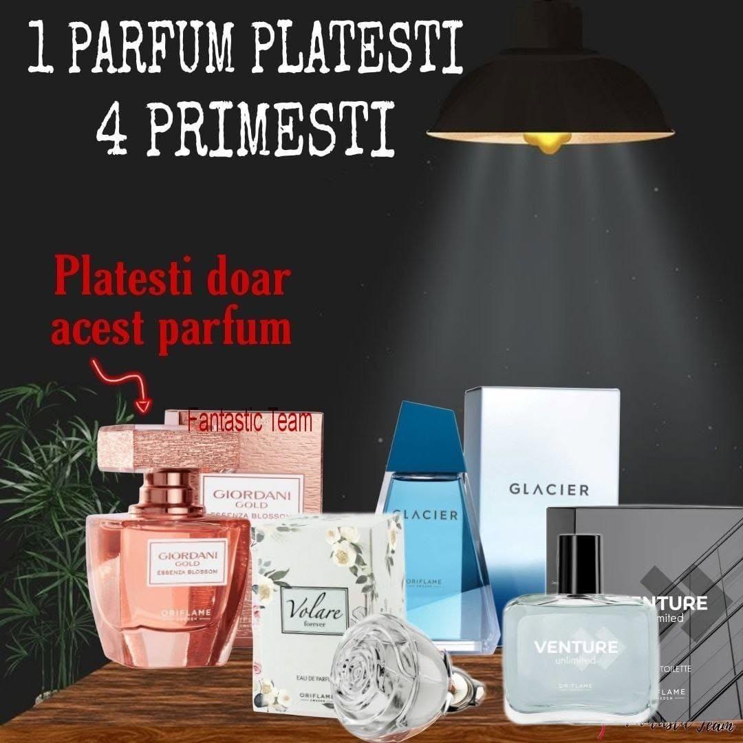 Buna 😊 In mod normal 𝗘𝘀𝗲𝗻ța 𝗱𝗲 𝗽𝗮𝗿𝗳𝘂𝗺 𝗚𝗶𝗼𝗿𝗱𝗮𝗻𝗶 𝗚𝗼𝗹𝗱 𝗘𝘀𝘀𝗲𝗻𝘇𝗮 𝗕𝗹𝗼𝘀𝘀𝗼𝗺 costa 210 lei, iar acum avem o oferta in care primesti 4 parfumuri la prețul de 233 lei. - Giordani Gold Essenza Blosson - Volare - Glacier - Venture Vrei si tu?