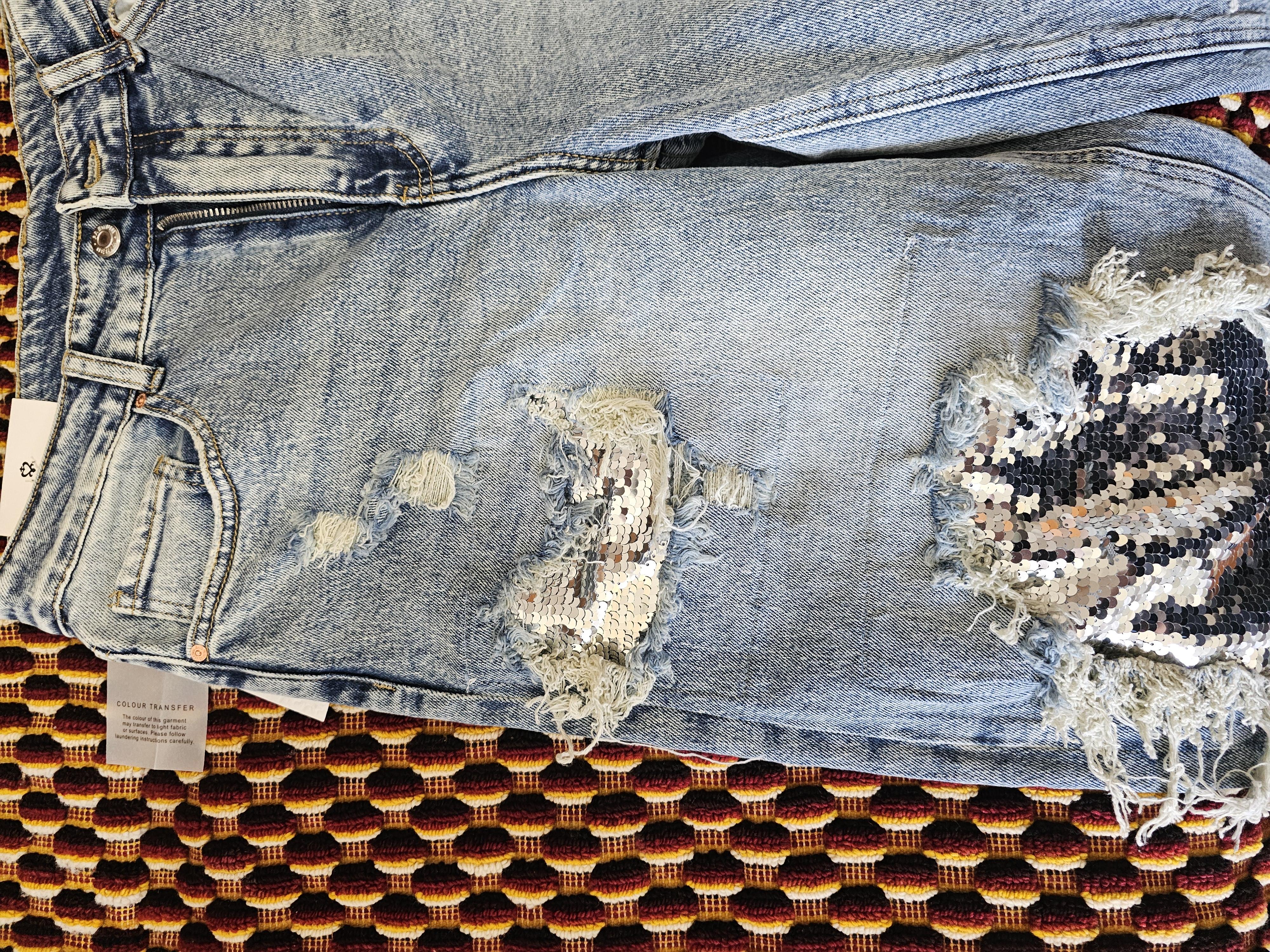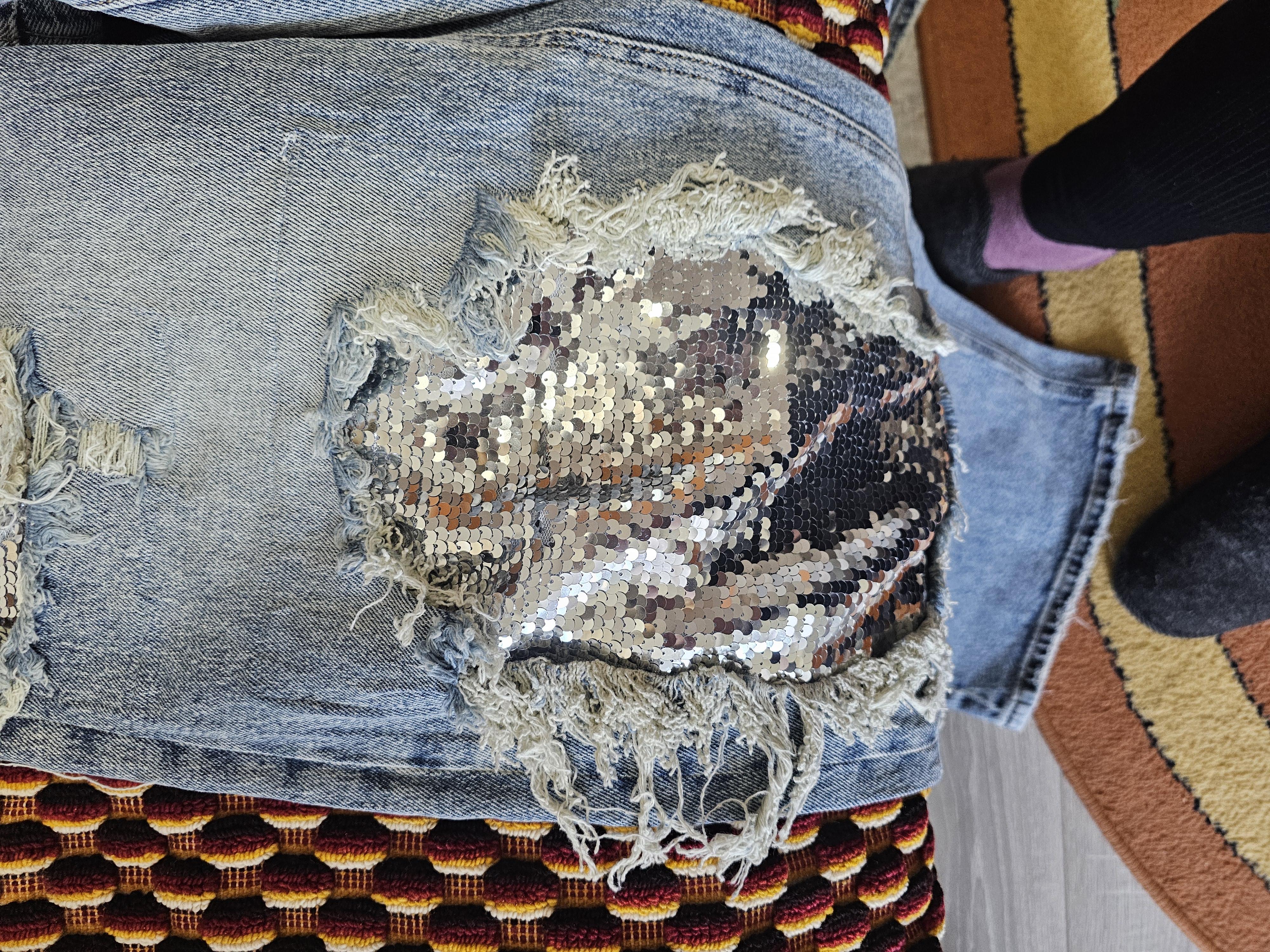Blugi cu rupturi și paiete, marimea L, noi cu eticheta