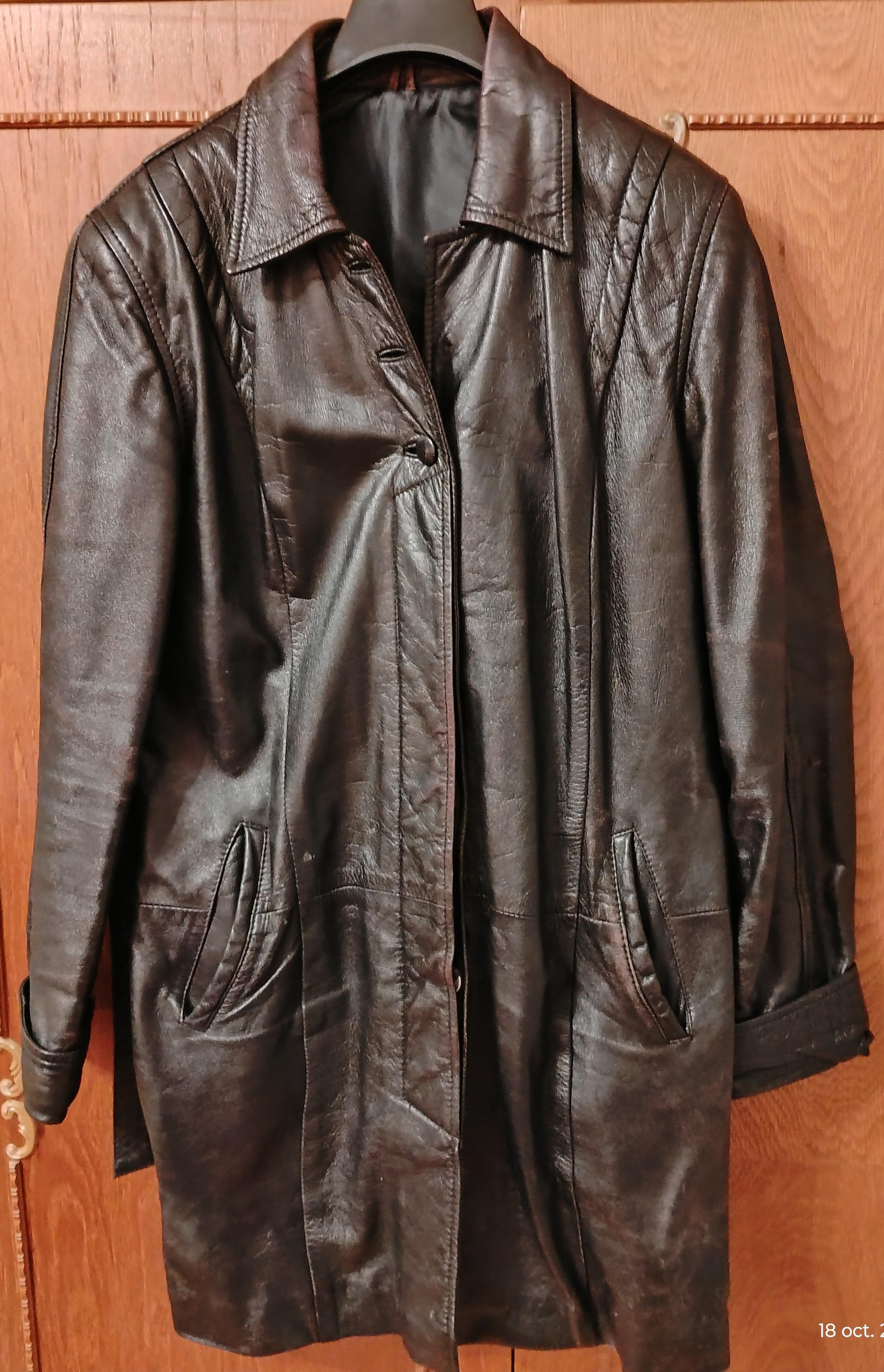 Haină piele scurtă- bust 50, umeri 45 , lungime 85, lungime mânecă 64.Purtat de câteva ori.Putin uzată, are 3 nasturi lipsa .Preț 150 lei.
