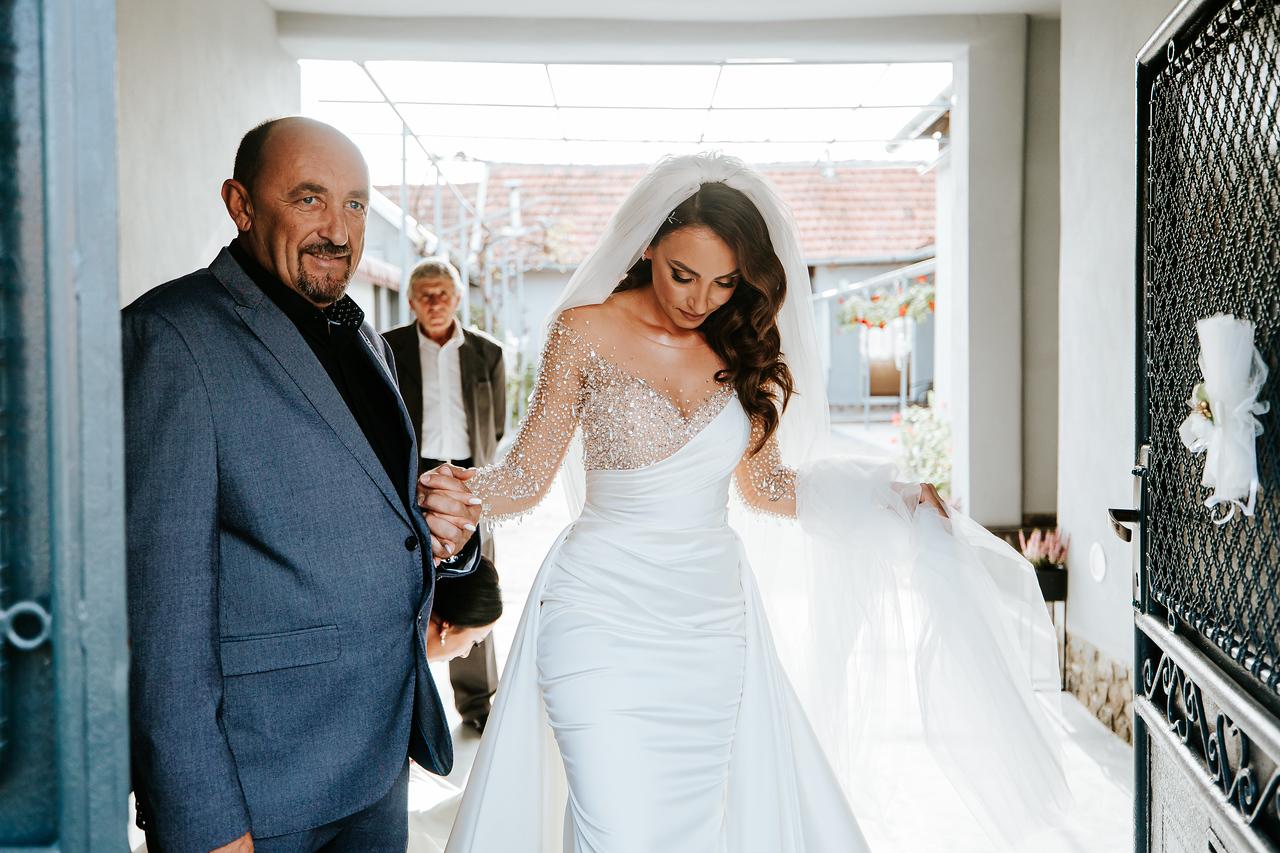 Vând rochie de mireasă tip sirenă cu trenă detașabilă inclusă.