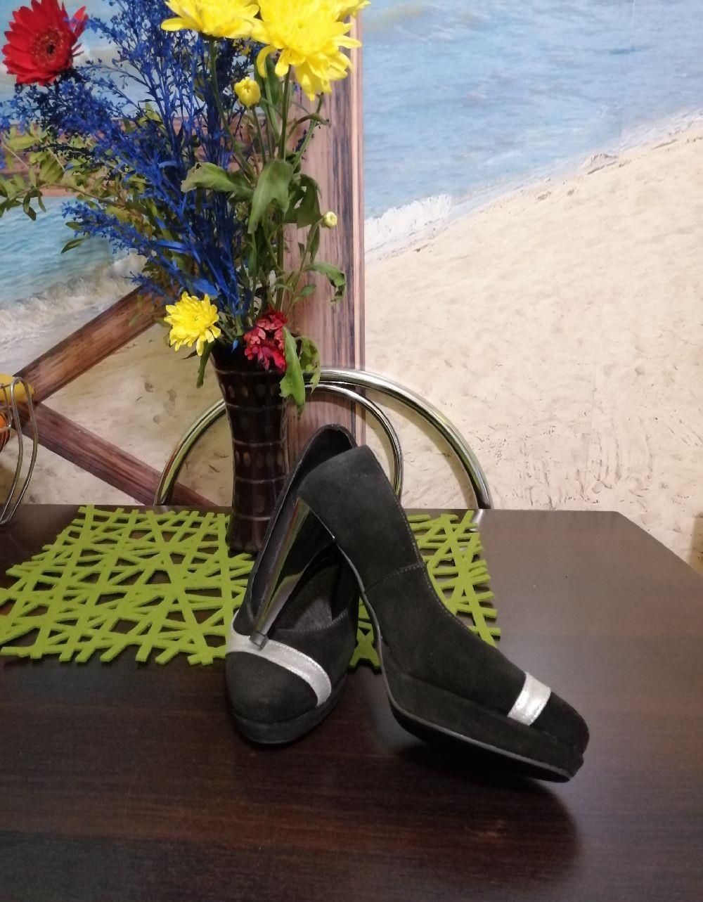 Pantofi dama italienesti: - din piele intoarsa, culoarea gri- firma Creative - noi, impecabili - nr. 40, toc de 9 cm