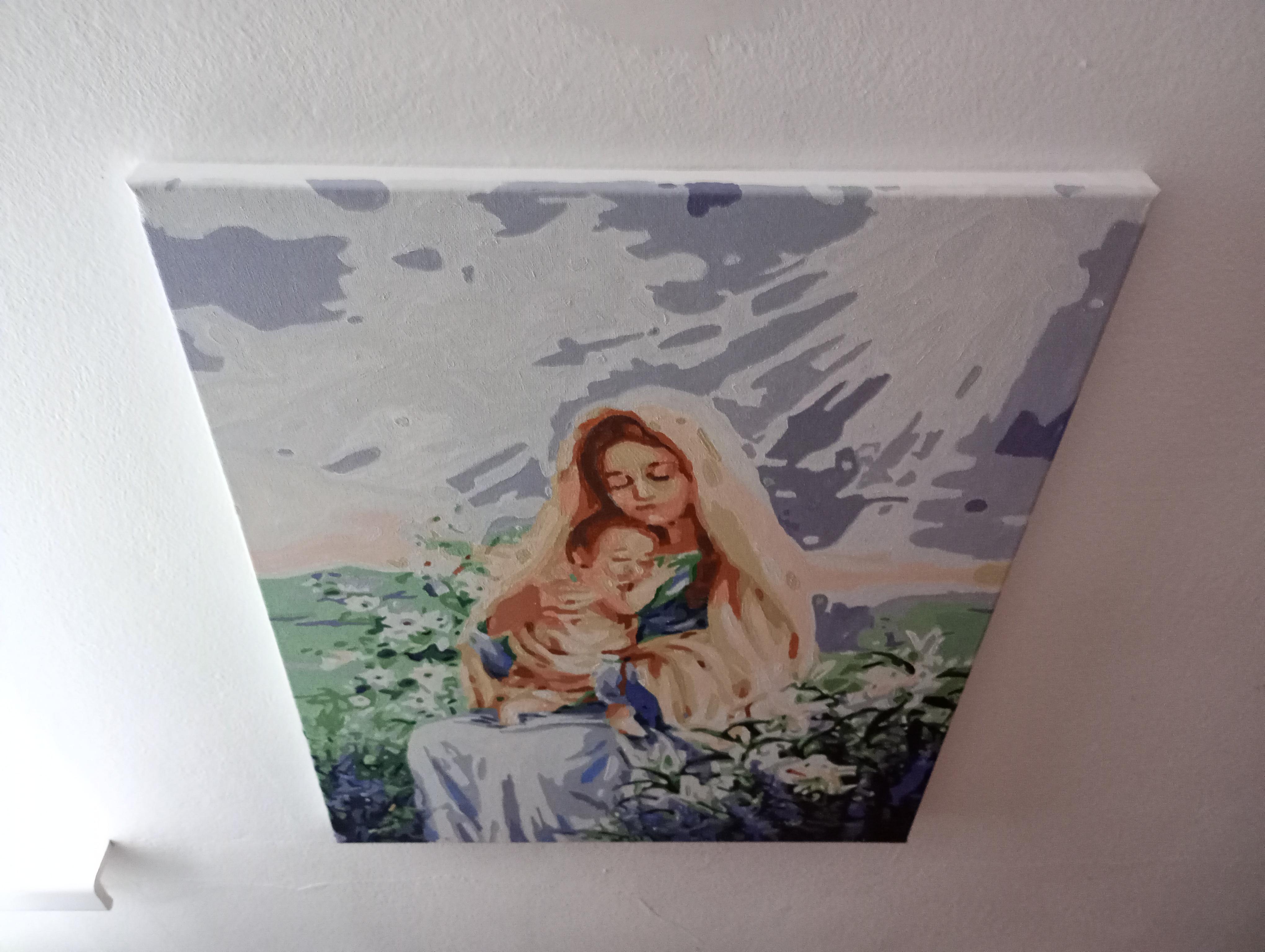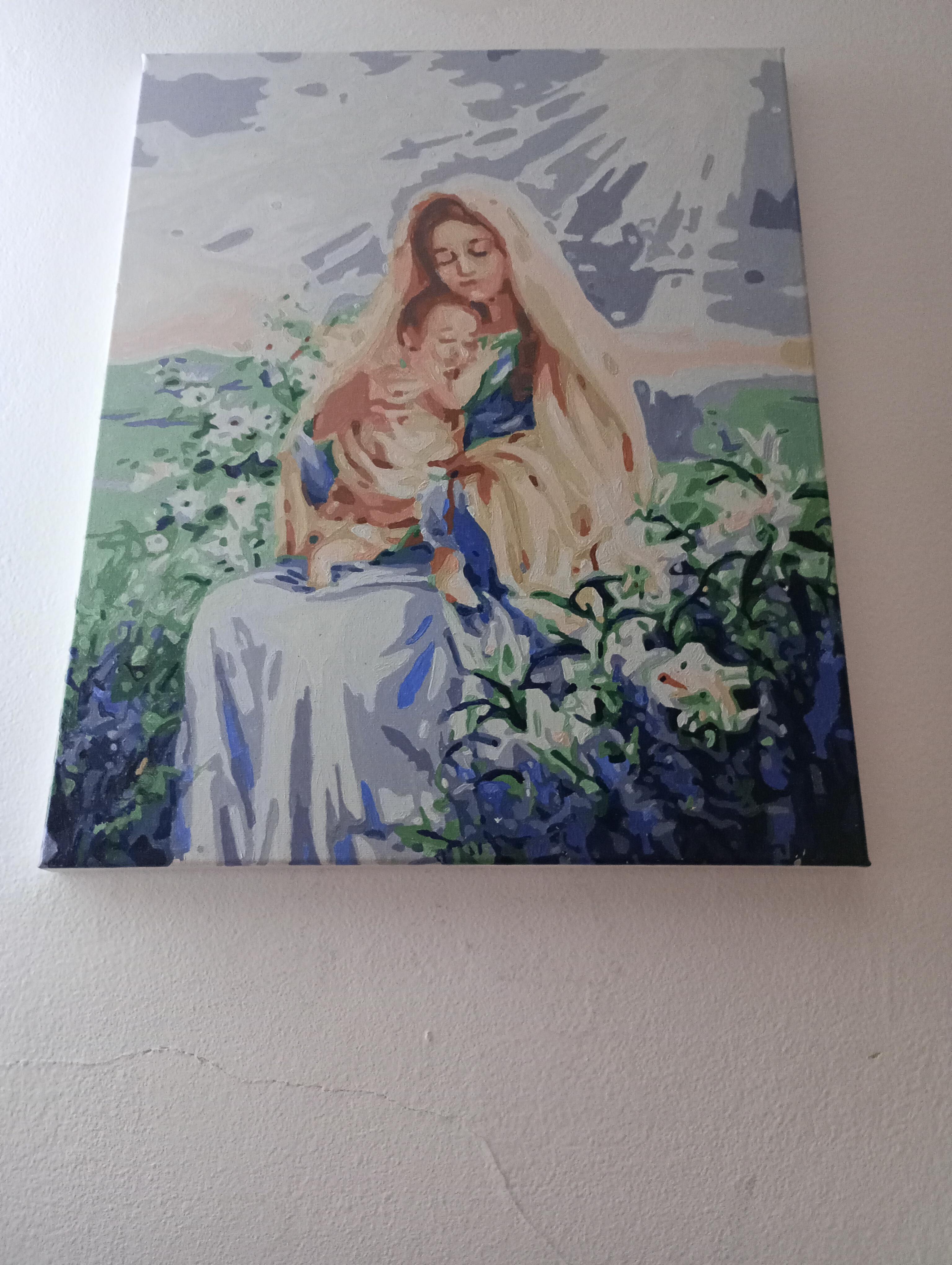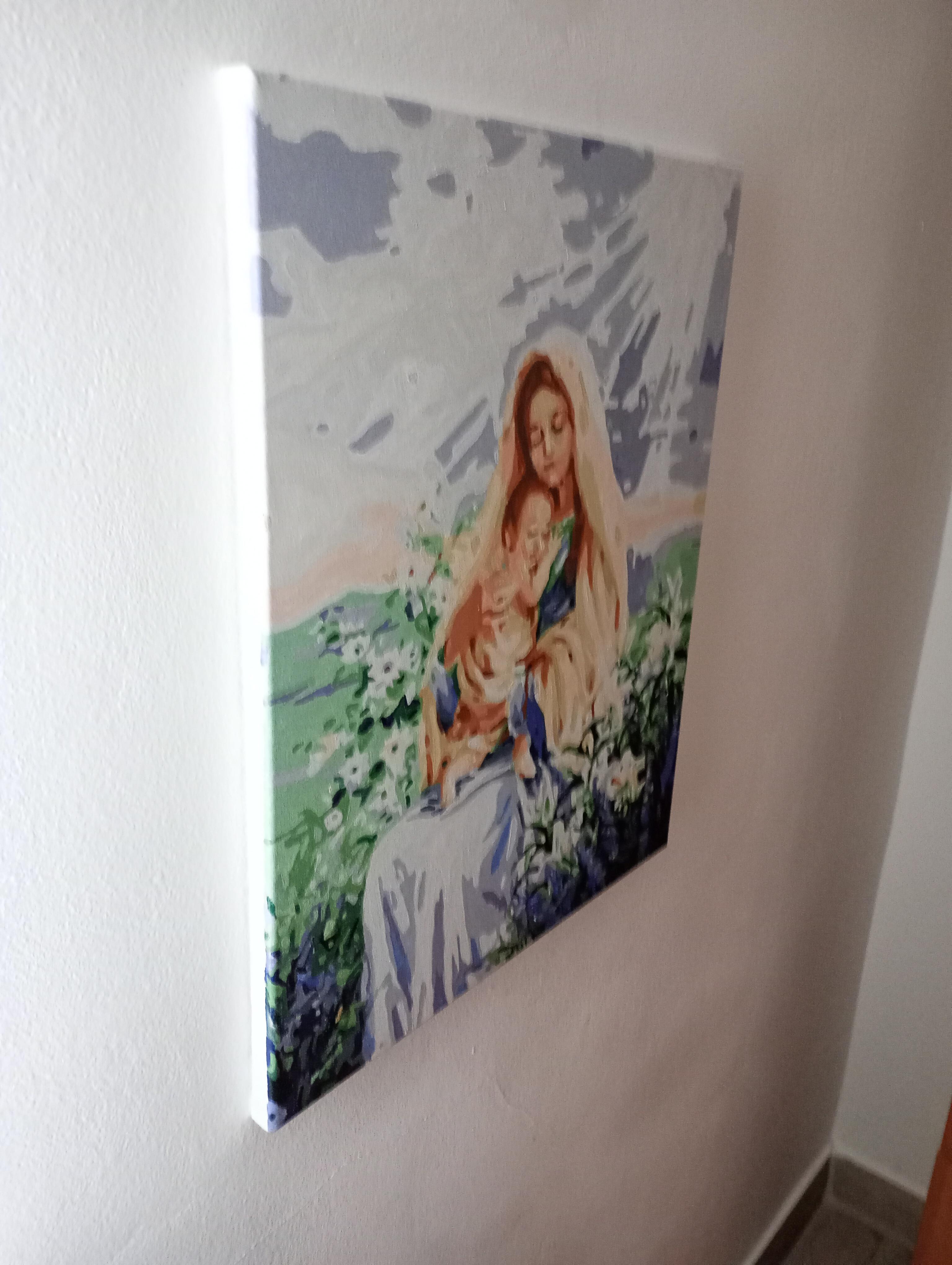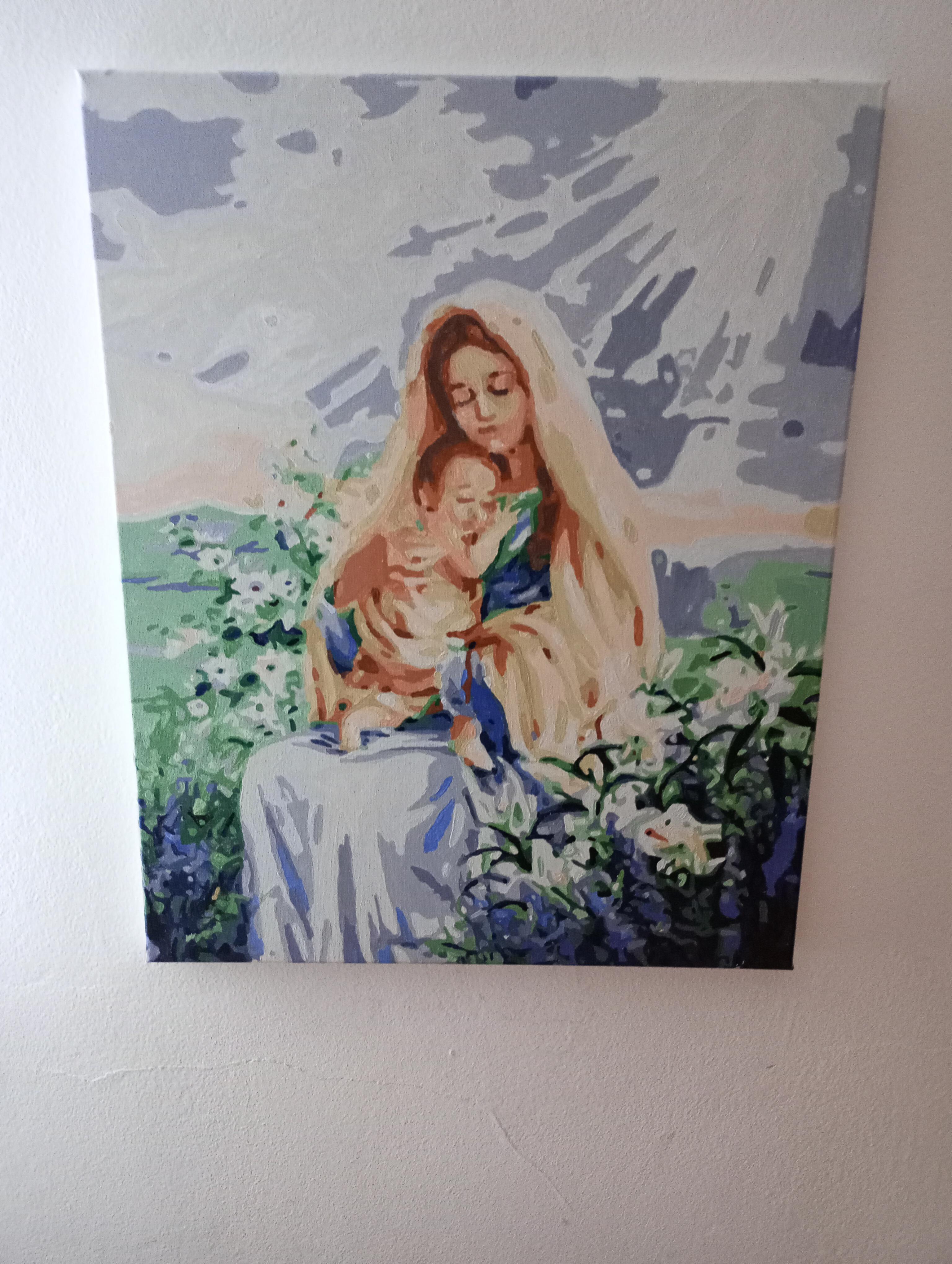 Vând pictură pe pânză Fecioara Maria și pruncul . Pictura este pe 40x50cm dimensiune. Prețul este negociabil !
