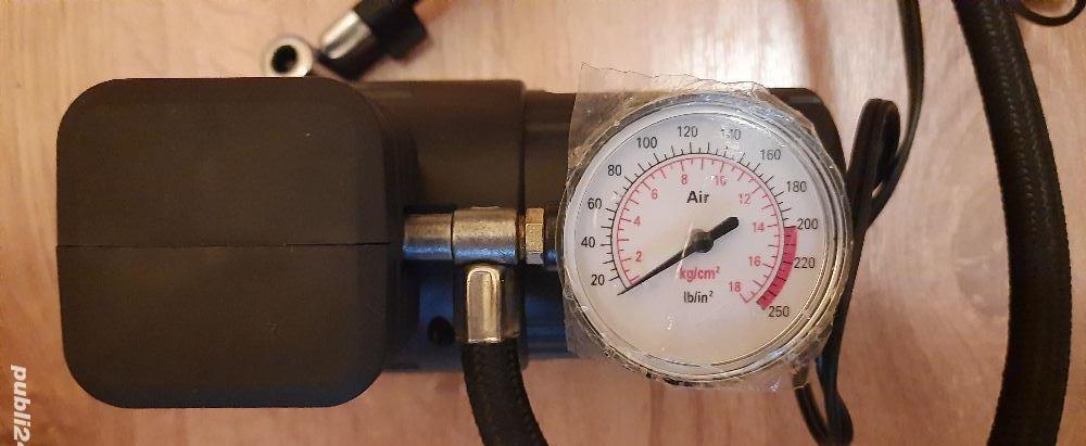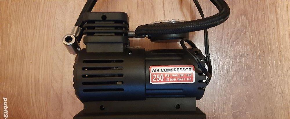 Stare produs: Nou !Tensiune alimentare: 12 VConsum de curent maxim: 12 ACatitate de aer: 15 L / minutPresiune maxima: 260 psiPresiune maxima bar: 18Lungime furtun: 45 cmLungime cablu: 2,5 mContine accesorii pentru umflat: Saltele, Mingi, Rotii bicicleta, etcTrimit in toata romania prin : Posta Romana si Fan CourierCost de livrare : Posta Romana 15 ron si Fan Courier 25 ron