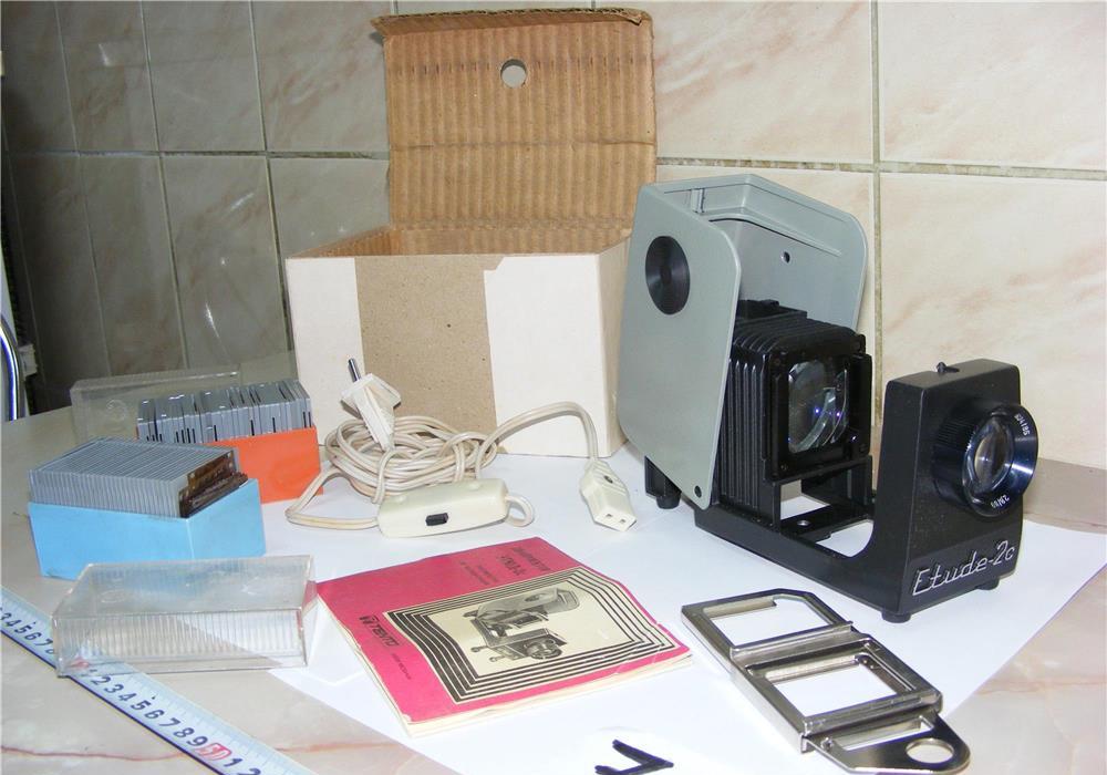 Retroproiector diapozitive ,,Etude,, fabricat de U.R.S..S în anii 60-70.Este în stare de funcționare (vezi pozele).ATENȚIE ! La cerere pot trimite filmuleț pe WhatsApp cu aparatul pus în funcțiune.Estetic aparatul se prezintă impecabil, nu prezintă deteriorări, lovituri etc. (vezi pozele).Retroproiectorul are în dodare :-cablu de alimentare original cu întrerupător tensiune-ramă metalică diapozitive -31 diapozitive cu poze-32 rame goale pentru pus diapozitive-cutia originală-instrucțiuni de folosireUn obiect deosebit de colecție, decor, ori pentru a fi folosit pentru proiecția diapozitivelor.Nu fac schimburi.Transportul în Bucuresti personal, locatie: str. Traian (intersectia B-dul Unirii cu str. Traian, punct de reper OTP Bank, fostul spital Caritas), în țară contra cost (20 lei) suportat de cumpărător prin Poșta Română.Vizitați și celelalte postări ale mele, veți găsi multe lucruri foarte interesante.35