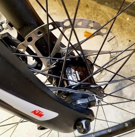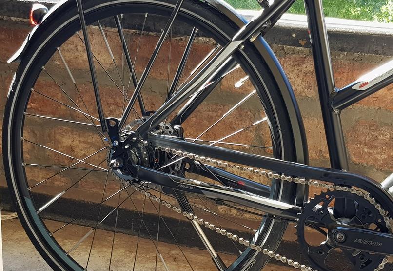 Vând bicicletă city bike KTM Maranello light.Transmisie cu lant Kmc nou, butuc generație nouă Shimano Nexus8 SG-C6001-8D cu 8 viteze interne. Butucul este servisat si gresat cu o garanție de rulare de 5000km fără servisare.Frâne hidraulice Alfine, cu etrieri Alfine, disc de 180mm pe față și 160mm pe spate. Frânele funcționează perfect și sunt foarte eficiente.Butuc față Alfine cu dinam, alimentează stopul de pe spate si farul puternic HILUX.Furca pe aer SR SUNTOUR NXC-E LITE.Pedalier SR SUNTOUR.Ghidon si Pipa KTM Line.Jenti de 28 in perfectă stare, fară lovituri, fară opturi, spitele dublu capsate sunt reglate si tensionate corespunzător.Cauciucuri SCHWALBE Marathon Racer, cu cercuri reflectorizante.Picior de sprijin Ktm.Aripi SKS față-spate cu stop pe spate.Portbagaj kTM din aluminiu cu arc.Bicicleta arată foarte bine, funcționează perfect, este bine intretinută.Bicicleta este foarte comodă, rulează impecabil si rapid, vitezele se schimbă fluent. Este o adevărată plăcere să circuli cu ea.Bicicleta se vinde din păcate datorită nefolosirii acesteia de către soție.Pentru alte informații vă rog trimiteti mesaj sau sunați.