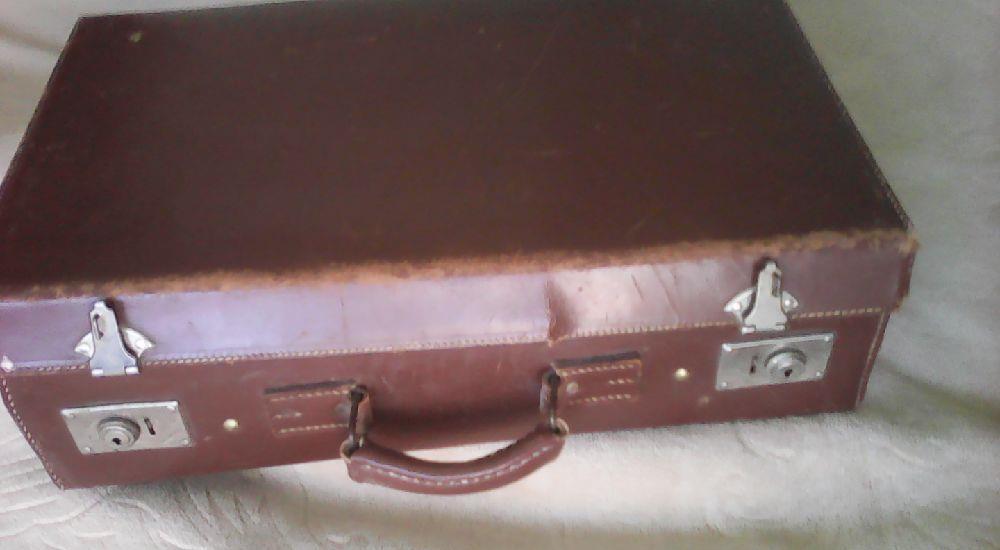 Vand geamantan vintage din piele maro, confectionat la inceput de secol XX, marime medie: lungime 54 cm, latime 35 cm, adancime 17 cm, interior imbracat in piele fina alba, stare exceptionala. Pret cu transport inclus: 150 lei.Trolerul este negru, mediu: lungime 60 cm, latime 36 cm, grosime 18 cm. Valiza clasica maro este din piele ecologica, mediu: 60 cm lungime, 42 cm latime si 15 cm grosime. Trolerul si valiza sunt in stare acceptabila. Pret: troler 80 lei, valiza 40 lei, amandoua 100 lei.