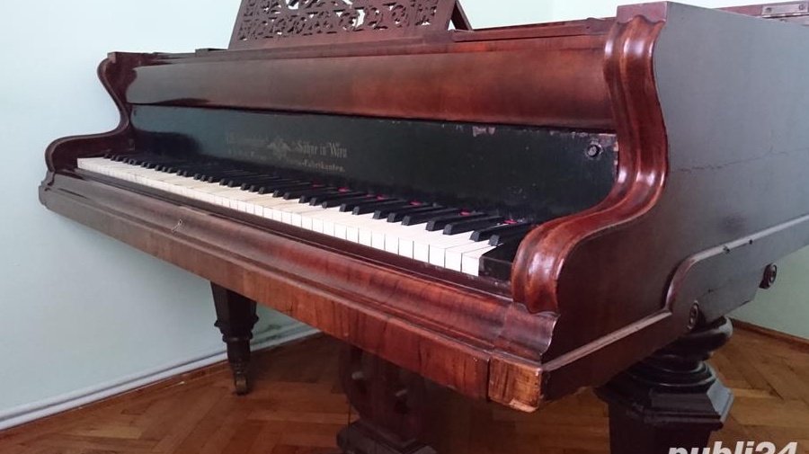 Pian forte, de camera, semicoada, placa de bronz, clape de fildes, fabricat in Viena in anul 1875 - J.M.Schweighofer & Sohne. Stare foarte buna de functionare.Schweighofer este una dintre casele de pian cele mai renumite din Viena, fiind cea mai veche producatoare de piane, fondata in 1792 de Michael Schweighofer (1771-1809).Ea are o istorie de fabricare a pianelor extrem de respectata, in 1845 i s-a acordat statutul de marker oficial de pian de catre Imparatul Austriei. Singurul instrument facut de el se afla la Muzeul Kunsthistorisches din Viena. Pianul meu este fabricat de fiul lui Maichael - Johan, care a adus imbunatatiri tehnice, obtinand astfel medalia de aur la Viena in cadrul expozitiei, premii suplimentare la expozitia din Munchen, in 1854, medalia de aur la Expozitia Mondiala de la Paris in 1867, in 1873 a primit diploma de onoare a Expozitiei Mondiale de la Viena , acestea si alte medalii aflate pe medalionul pianului.