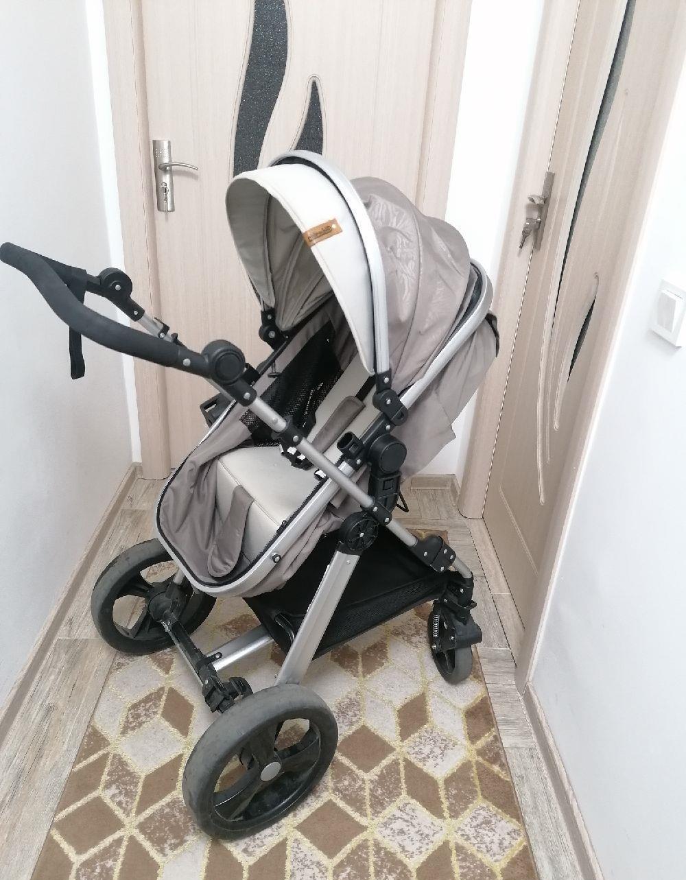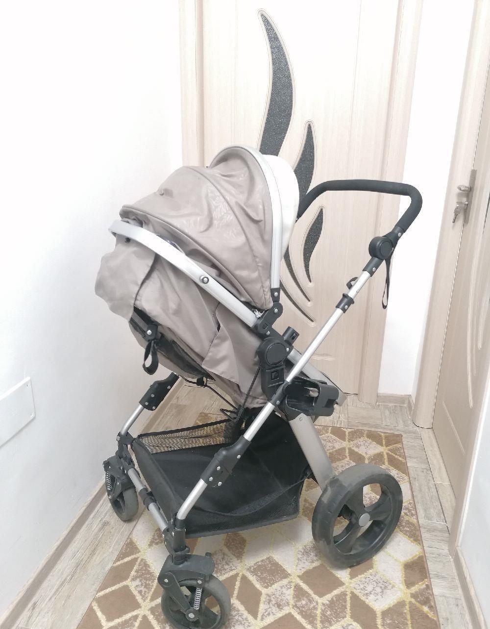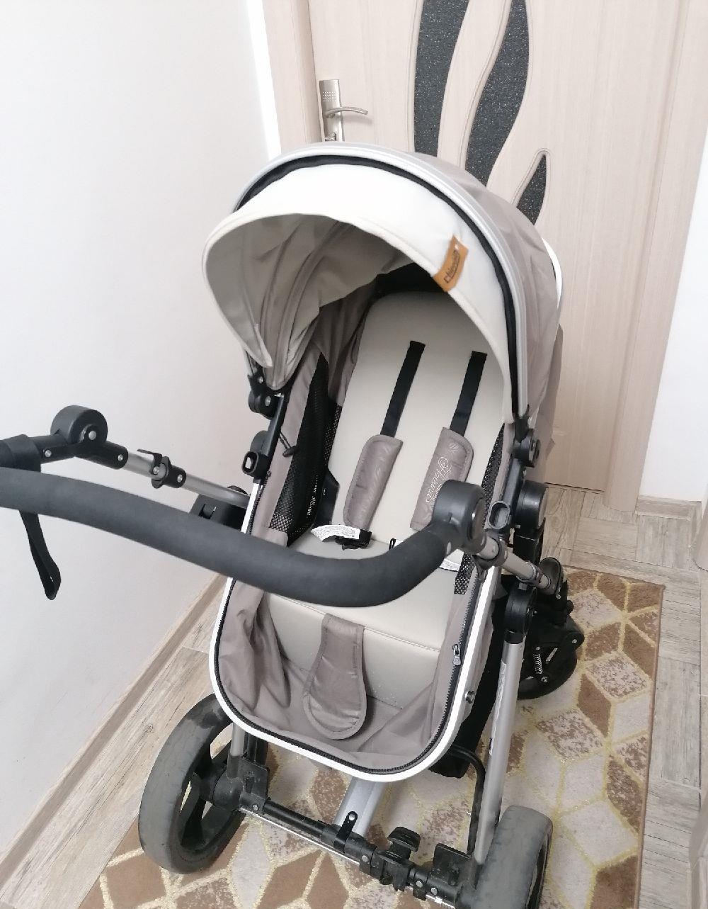 Potrivit pentru nou-născuți, de la 0 luni pana la 15kg. Șezut transformabil în landou, șezut reversibil, poate fi montat pe cadru cu fața spre părinte sau cu fața spre direcția de mers. Buzunar pentru accesorii, orificii de aerisire pe ambele părți ale șezutului, maner confortabil, reglabil pe înălțime.Cos de cumpărături, roti dotate cu suspensii, roti spate echipate cu frână, suport pentru pahar inclus.Foarte puțin utilizat.