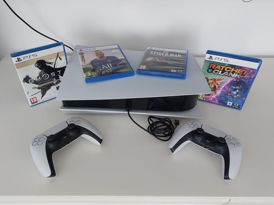 Vând Consolă PlayStation 5 Sony, varianta cu Disk BluRay, folosită foarte puțin.Consola are o capacitate de stocare de 825 GB, capacitate de memorie RAM de 16 GB, rată refresh de 120 Hz, suportă 4K și UHD.Este varianta CFI-1116A lansată în august 2021, modelul este special lansat pentru Europa De Est.Consola se vinde împreună cu accesoriile originale, 2 controlere și 4 jocuri. Toate sunt în perfectă stare de funcționare și arată foarte bine din punct de vedere estetic, fără defecte vizibile sau ascunse. A fost cumpărată în octombrie 2021 de la Media Galaxy (dețin bon fiscal), încă beneficiază de garanție. Consola se poate folosi și ca DVD. Nu fac schimburi !!!