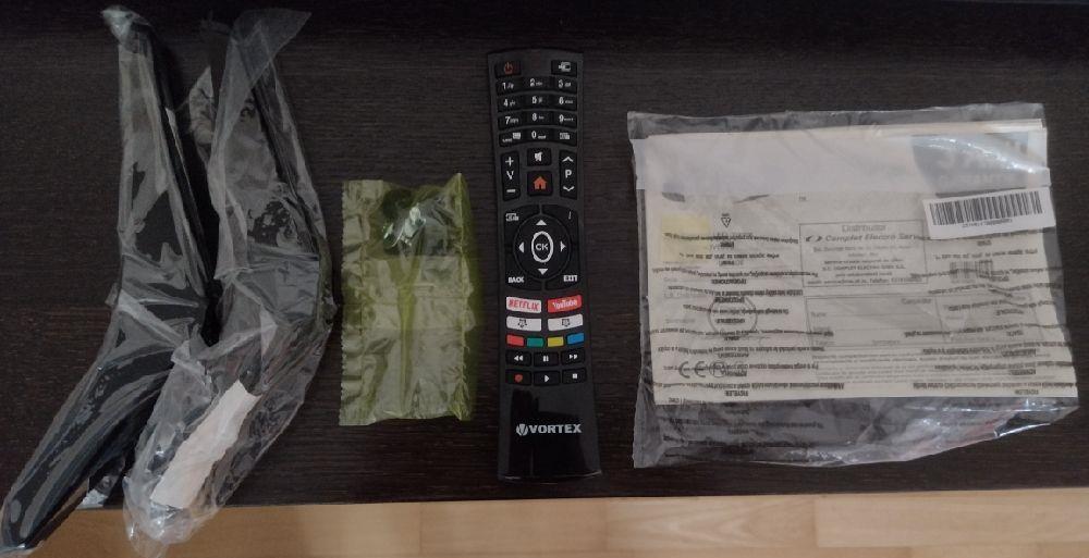 TV Vortex Full HD - 108 cm (43")Televizorul a fost achiziționat în iunie si a fost puțin folosit, dar pentru ca am topit puțin rama de plastic si apare o mica dunga pe ecran a trebuit să-l achiziționez de la proprietar. Prețul în magazin este 1200 RON si pentru ca nu am nevoie de încă un televizor în casă îl dau la jumătate de preț. Dețin si factura cu bon care dovedesc data achiziționării și prețul. Nu ofer transport, predare personala și proba la domiciliul meu. Mai jos găsiți descrierea completa a produsului. Rog contact telefonic pentru detalii. Tip TV Smart TVEcran PlatTip Display LEDDiagonala (cm) 109Unghi de vizualizare (grade) 178Dimensiune ecran (inch) 43Rezolutie Full HDFormat ecran 16:9Luminozitate (cd/m2) 300Contrast 5000:1AudioSistem difuzoare 2.0Putere (W) 16ConexiuniTip tuner DVB-C, DVB-T, DVB-T2Wi-Fi DaConectori 1 x USB, 2 x HDMI, 1 x VGA, Slot CI+, Iesire audio digitala (optica), 1 x mini AV, Intrare audio, Iesire castiCaracteristici tehnicePutere consumata in standby (W) 0.5Putere consumata in functiune (W) 75Clasa eficienta energetica EAlte caracteristiciCuloare NegruCuloare stand NegruStandard VESA (mm) 100 x 100Continut pachet Televizor, Telecomanda, Baterii, Manual de utilizareDimensiuni fara stand (L x A x I cm) 97.3 x 8.1 x 56.7Dimensiuni cu stand (L x A x I cm) 97.3 x 25.2 x 61.8Greutate cu stand (Kg) 7.16