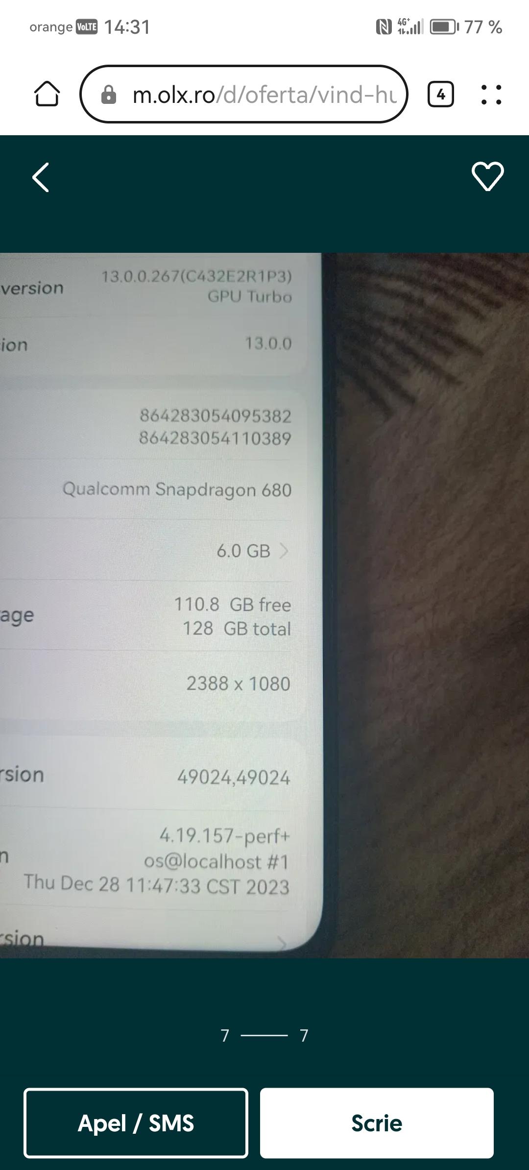 vand huawei nova y 90 memorie 128 gb 6 vb ram are o fisura mica ca un fir de par mai multe detalii la nr de tel predare personala in arad