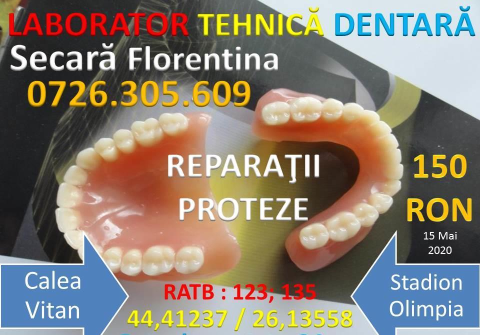 Convenabil si rapid vă eliberăm de stres - durează max. 2 ore.Se poate repara proteza acrilică fracturată sau fisurată, se pot completa dinti desprinsi din proteză accidental, se pot completa dinti în proteză pe locul dintilor extrasi, se pot înlocui croșeti de sârmă rupti. Vă asteptăm!Localizare laborator - Calea Vitan - Stadion Olimpia - Autobuze:123,135Atentie!!! Nu încercati să reparati proteza cu adezivi sau la flacără pentru că o puteti deteriora iremediabil. Proteza se repară cu material acrilic polimerizat la temperatură si presiune. Astfel va căpăta rezistenta de înainte de rupere. Publi24_1613043196 07xx xxx xxx Arata telefon
