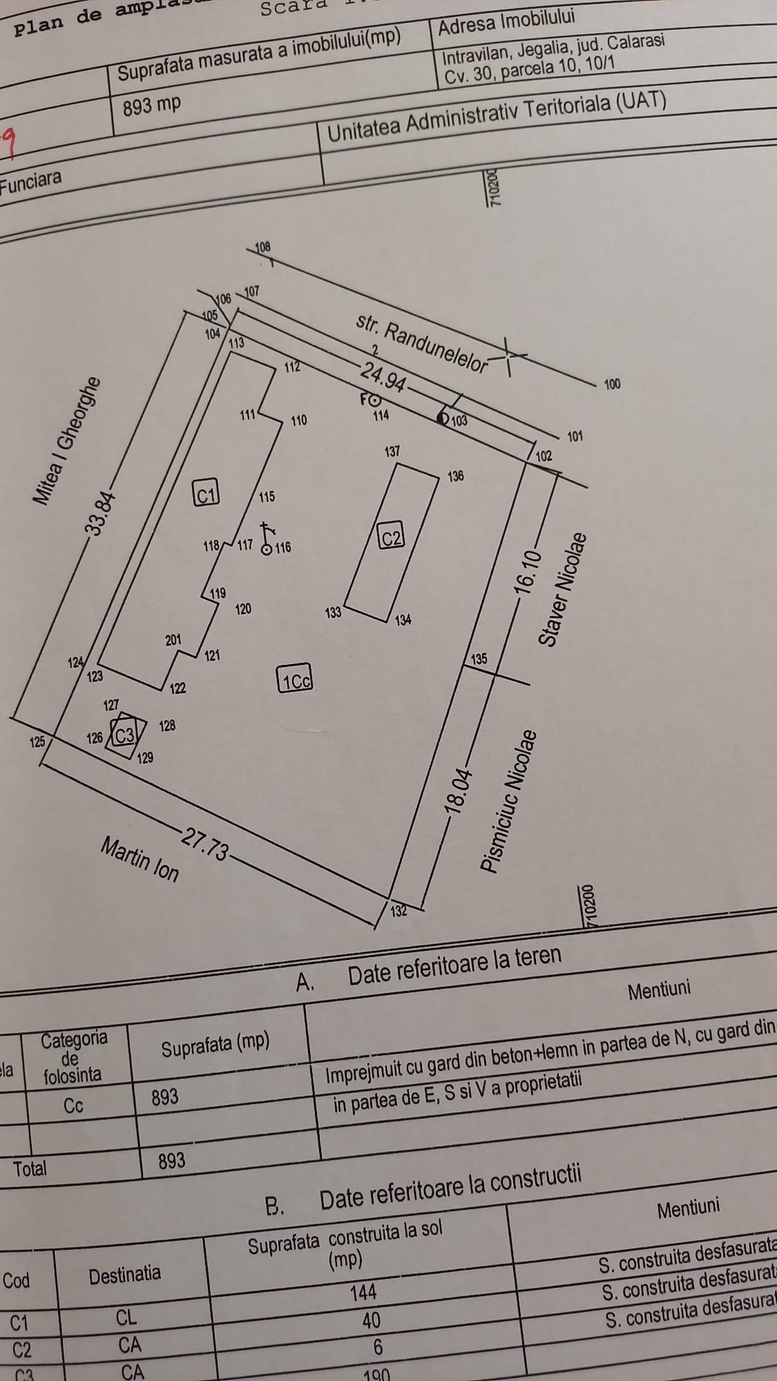 Locația: comuna Jegalia, strada Randunelelor nr. 2, județul Călărași.