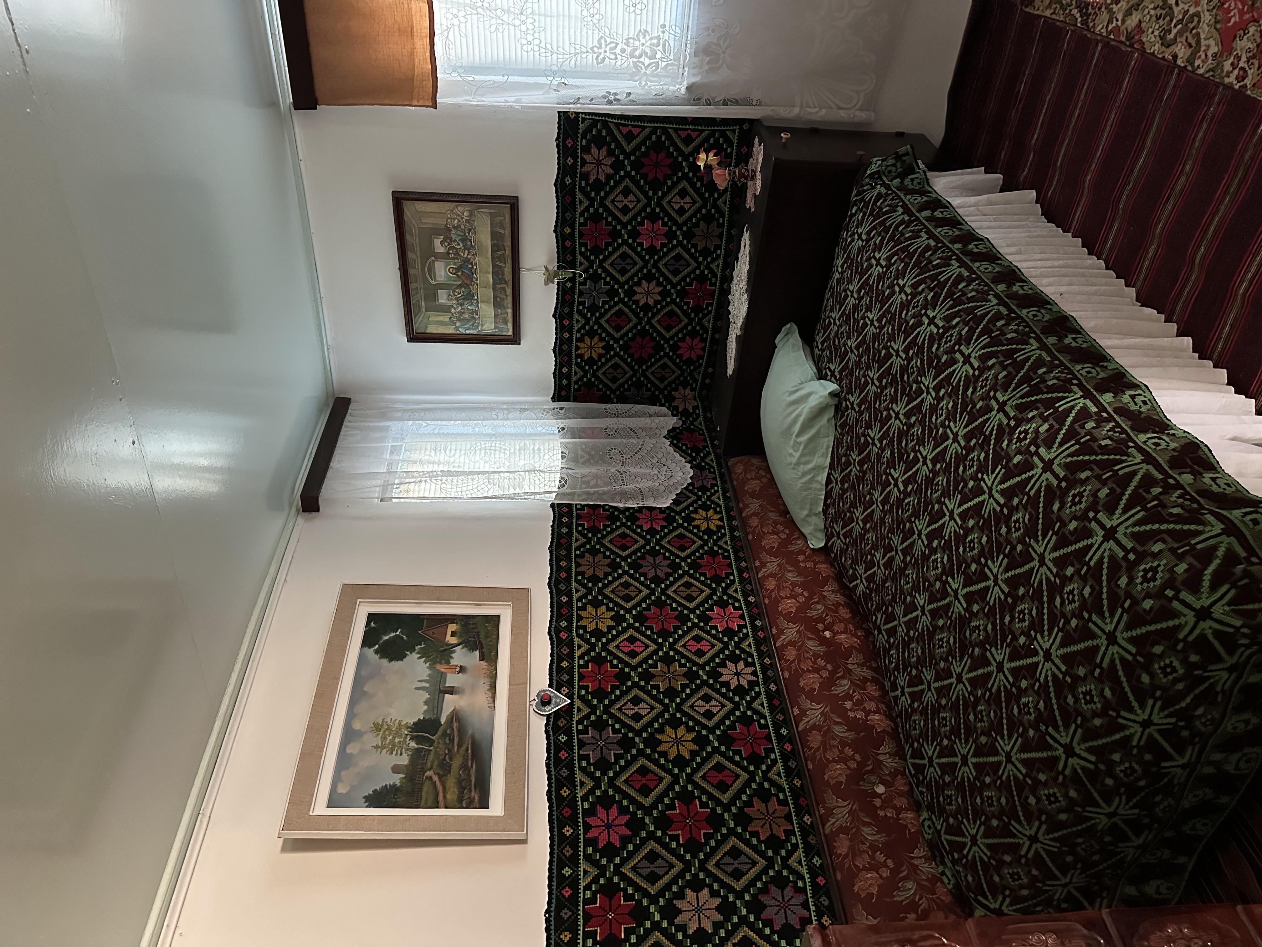 - Compartimentare: 4 camere şi 2 holuri - casa este mobilată în stil tradițional, rural românesc, cu motive populare : sobe din teracotă, țesături decorative, mobilier simplu din lemn