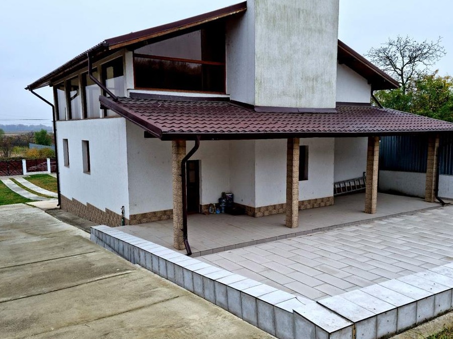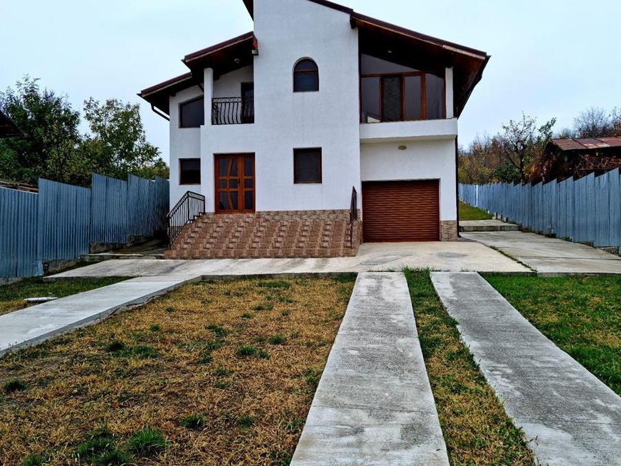 Casa are in componentaParter- Living,dormitor,bucatarie,baie,garaj si doua terase foarte mari exterioare,dintre care una acoperitaEtaj-Dormitor matrimonial,baie,dormitor,hol,balcon si o terasa inchisa in sticla foarte mare,respectiv pod-Are toate utilitatile, apa,gaze,curent electric,canalizare.-Casa este in stadiul de mobila,incalzirea se face cu centrala pe gaze si calorifere-Este situata la 50 m de poarta,avand o priveliste deosebita.-Curtea este betonata cu alei ce duc spre garaj de la portile mari,respectiv spre intrarea principala de la poarta mica.-Suprafata terenului este de 2173 mp,in spatele casei exista o gradina cu pomi fructiferi.-Terenul este imprejmuit cu gard din beton,teava de tubing si tabla.-Beneficiati de un pod foarte mare si un gard si porti elegante.