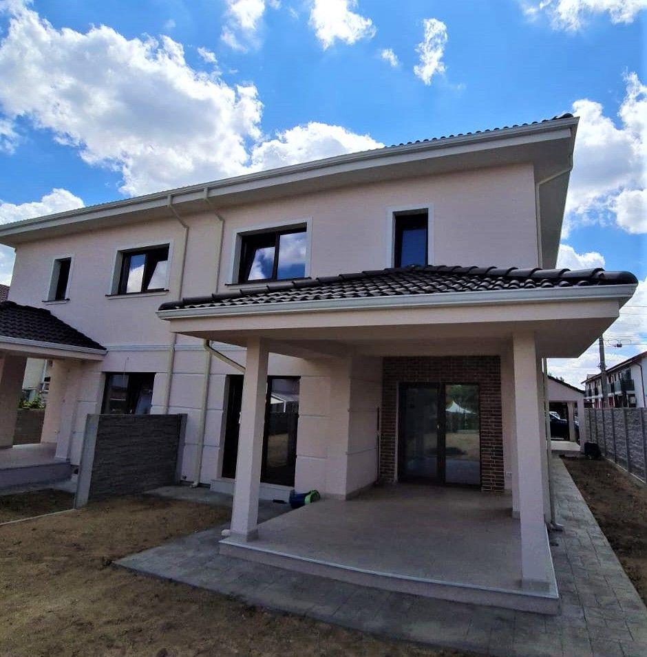 Propun pentru vânzare, duplex P+E situat în Dumbrăvița lângă Pădurea Verde, pe stradă asfaltată, cu toate utilitățile branșate.Construcție nouă din cărămidă cu acoperiș din tiglă și zid despărțitor dublu, izolată cu termostistem din polistiren de 10cm, cu suprafața utilă de 120mp, teren de 390mp și finisaje moderne.Compartimentare:PARTER:Hol accesLivingLoc de luat masaBucătărie închisăBaie de serviciuCameră depozitare/ dressingLoc depozitare sub scăriTerasă exterioară acoperităETAJ:HolDormitor matrimonial cu baie proprie cu dușDressingDouă dormitoareBaie cu duș și vanăTerasă Spațiu de depozitare în pod cu acces pe scara rabatabilăDuplexul este echipat cu centrală termică proprie și încălzire în pardoseală, carport acoperit și gradină amenajată cu gazon și sistem de irigații cu foraj propriu.Detalii si vizionare se pot obtine la telefon 0785.997.537