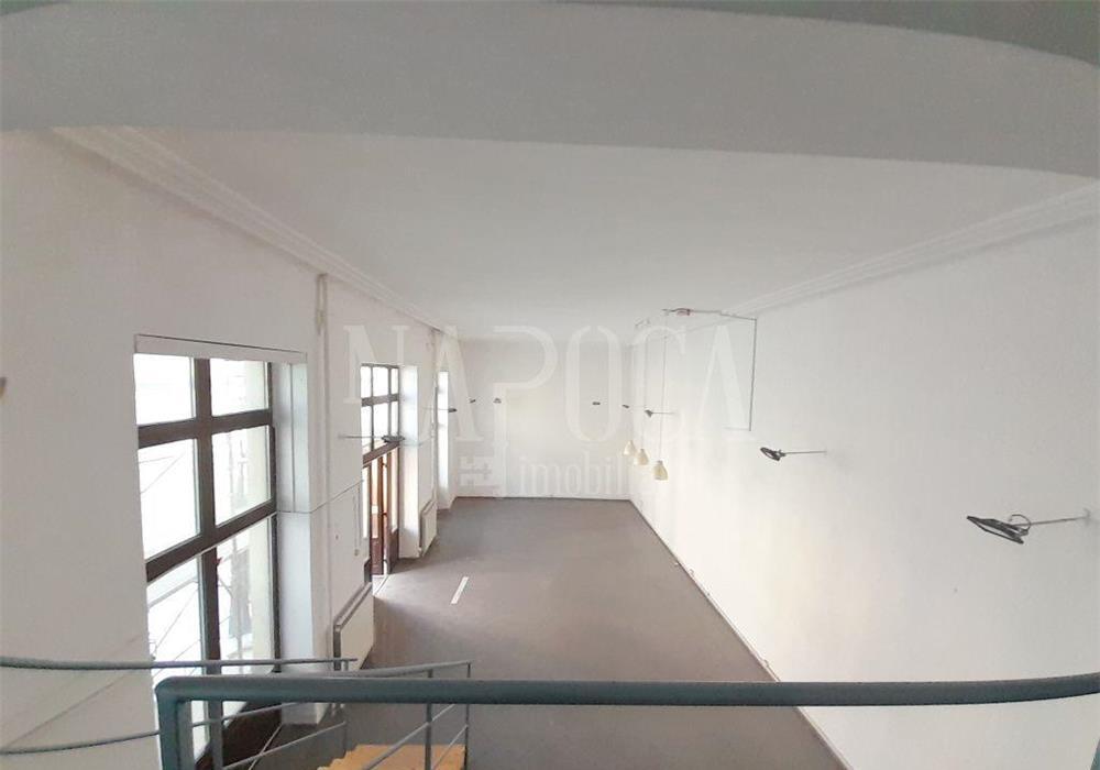 ISC 113421Va prezentam spre inchiriere un spatiu comercial de 203 mp, intr-un imobil situat intre Primaria Oradea si Piata 1 Decembrie. Imobilul se afla pe o strada comerciala principala cu trafic intens, iar statiile de autobuz si tramvai se afla in imediata apropiere.Situat la parterul imobilului, cu un front stradal de 20 m tip vitrina, accesul in spatiul comercial se face direct din strada prin 2 intrari distincte. Exista si un acces lateral dintr-o curte inchisa pentru aprovizionare.Spatiul cu o inaltime de 5 m si suprafata totala de 203 mp este structurat astfel:- La parter se afla o sala de vanzare de 73 mp, o sala de prezentare de 26 mp, 1 birou, 2 grupuri sanitare, dus, 1 depozit de 40 mp. Sala de prezentare se poate mari cu depozitul, fiind despartite doar de un perete fals.- Cu acces direct pe scari din sala de vanzare se ajunge la mezanin, unde sunt 2 birouri de 28 si respectiv de 19 mp.Finisajele de tip clasic sunt evidentiate prin ferestre si usi termoizolante cu lemn, usi interioare din lemn, sala de prezentare si de vanzare este cu gresie clasica, baile cu gresie si faianta clasice. Confortul termic este asigurat de sistemul de termoficare al orasului.Optional se poate inchiria si spatiul de la demisol cu suprafata de 112 mp, folosit in prezent ca si depozit.Pentru informatii suplimentare, va stam cu drag la dispozitie.Echipa Napoca Imobiliare!