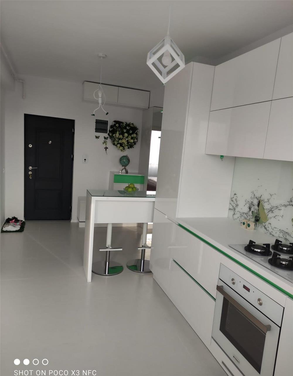 Agentia imobiliara Yna va ofera spre inchiriere in exclusivitate un apartament cu 2 camere intr-un bloc nou, constructie 2021 in zona Gavana, langa Kaufland, la etajul 5/6, cu lift. Apartamentul este confort 1, decomandat, in suprafata totala de 52 mp., cu balcon la living, centrala, aer conditionat,incalzire in pardoseala, masina de spalat vase si masina de spalat rufe cu uscator. Apartamentul se afla la prima inchiriere, este mobilat si utilat de lux , este foarte luminos si detine si garaj. Este ideal pentru o persoana sau pentru un cuplu. Nu sunt acceptate animale de companie. Se percepe luna in curs plus o luna garantie si o singura data comision pentru agentie 50% din valoarea chiriei. Disponibilitate imediata. Pret 450 euro .