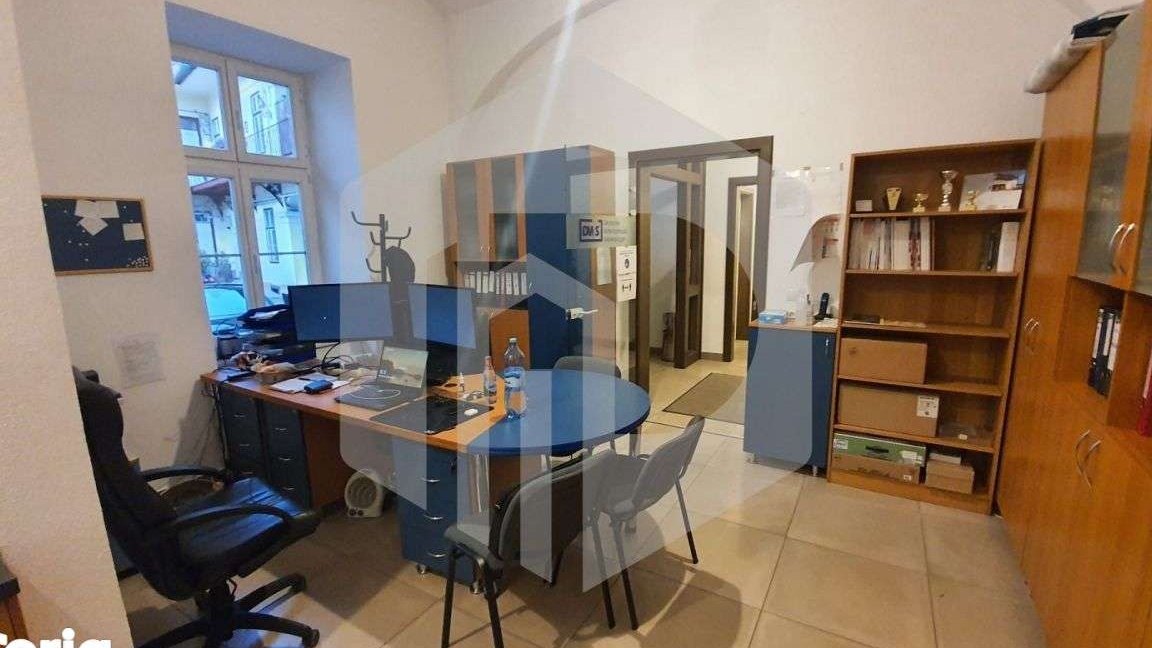 Platinum Imobiliare va propune spre inchiriere un spatiu de birouri extrem de generos situat in imediata apropiere de centrul istoric . Imobilul dispune de o suprafata utila de 148 mp fiind compartimentat in felul urmator : un hol generos , 2 birouri , o sala de sedinte ( aproximativ de 60 mp ) , o chicineta, 2 grupuri sanitare, un spatiu de depozitare.Spatiul este ideal pentru activitati de birou, conferinte, intalniri, workshop-uri, training-uri, prezentari si nu numai.Spatiul se afla la parterul unei cladiri de regim P+1 si dispune si de un loc de parcare in curtea comuna a imobilului.Pentru mai multe detalii sunati la numarul 0757754558 si precizati ca ati vazut oferta cu CP1375598.