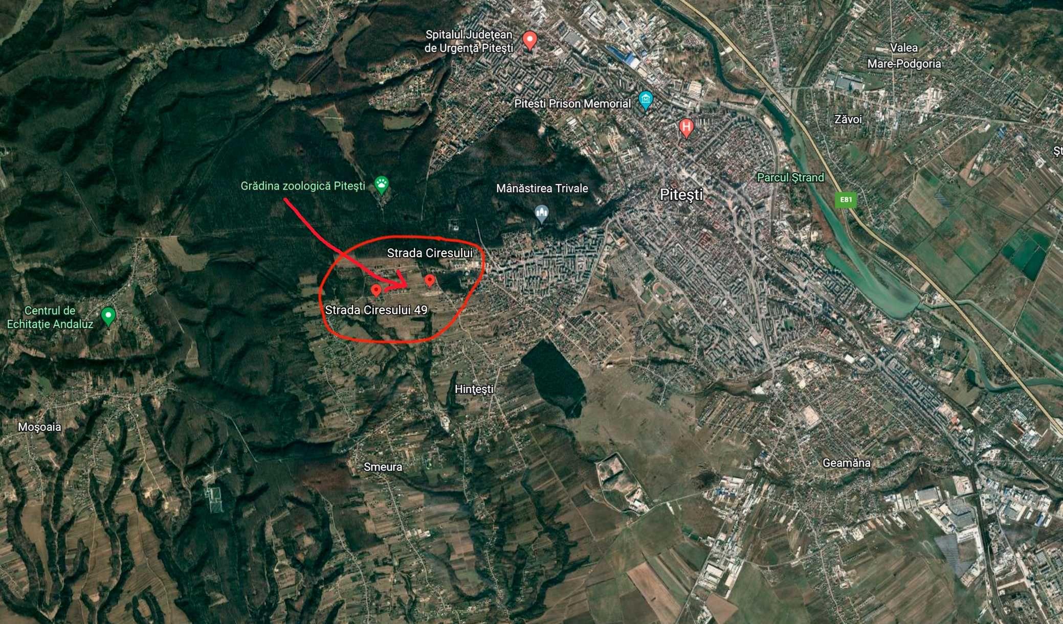 Amplasare pe strada Ciresului, Mosoaia.