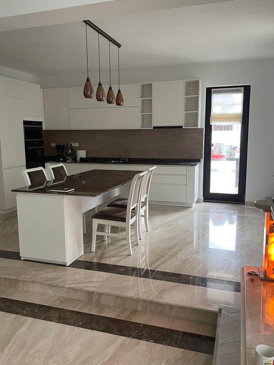 Suprafața teren 500mp, 4dormitoare+living,4bai, încălzire in podea, legată la termoficare , bucatarie open space, terasa 30mp,zona grătar, garaj 2 mașini, suprafața utila 200mpTel