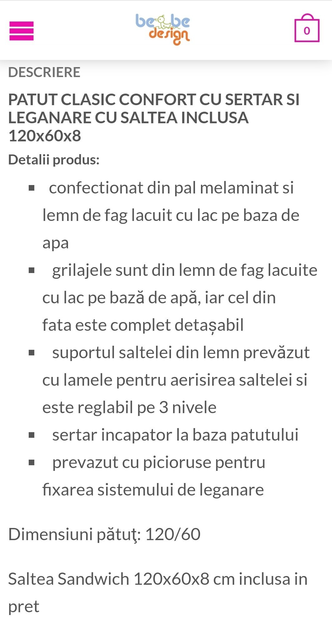 Pătuțul este prevăzut cu piciorușe pentru fixarea sistemului de legănare.