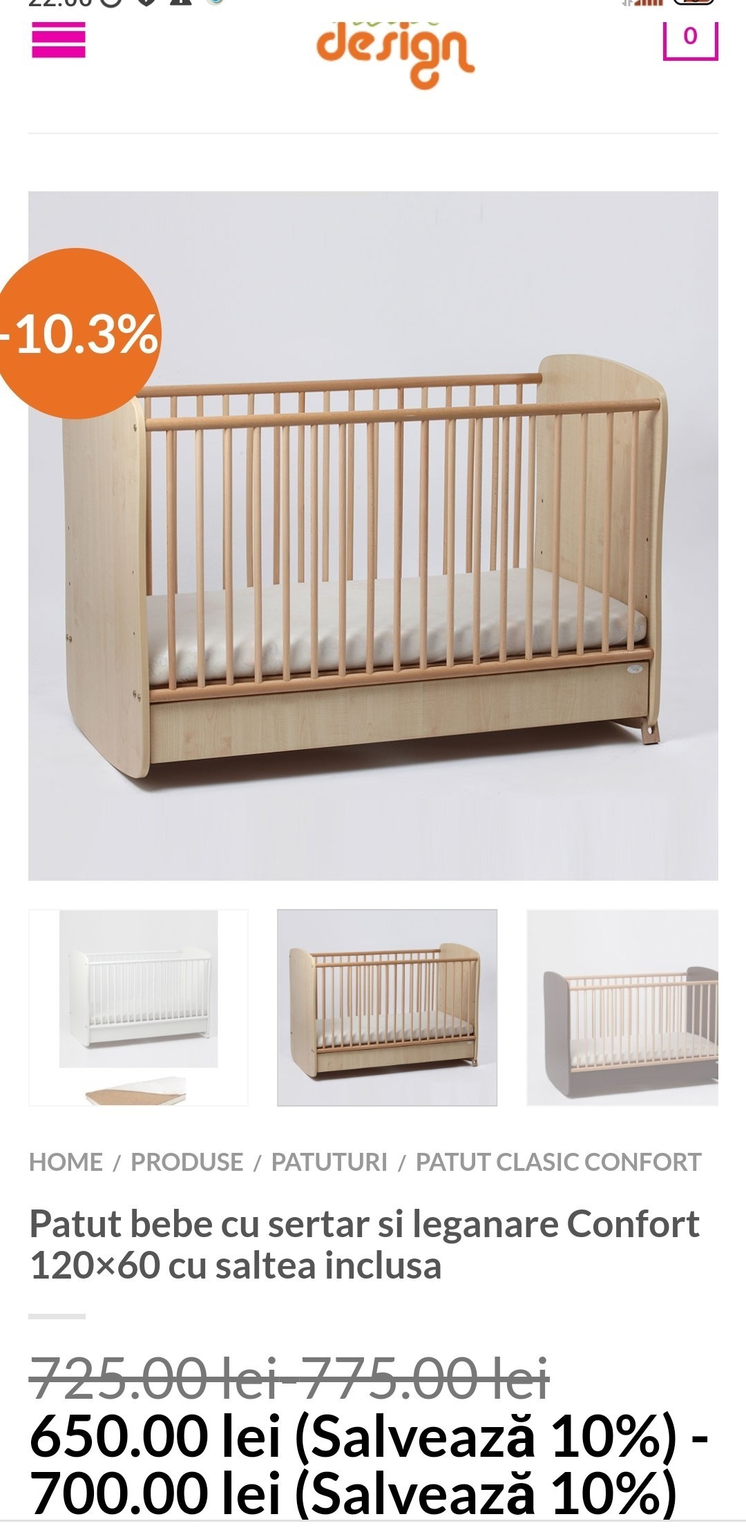 Vând pătuț cu sistem de legănare, sertar și saltea