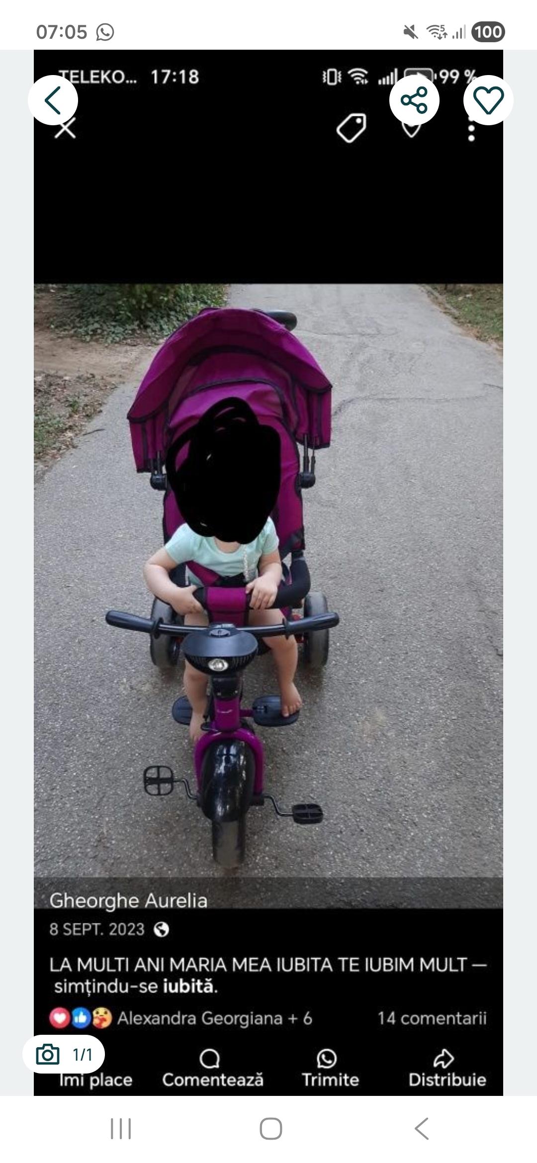 Se vinde o tricicleta de fetite cu ridicare personala de la adresa mea