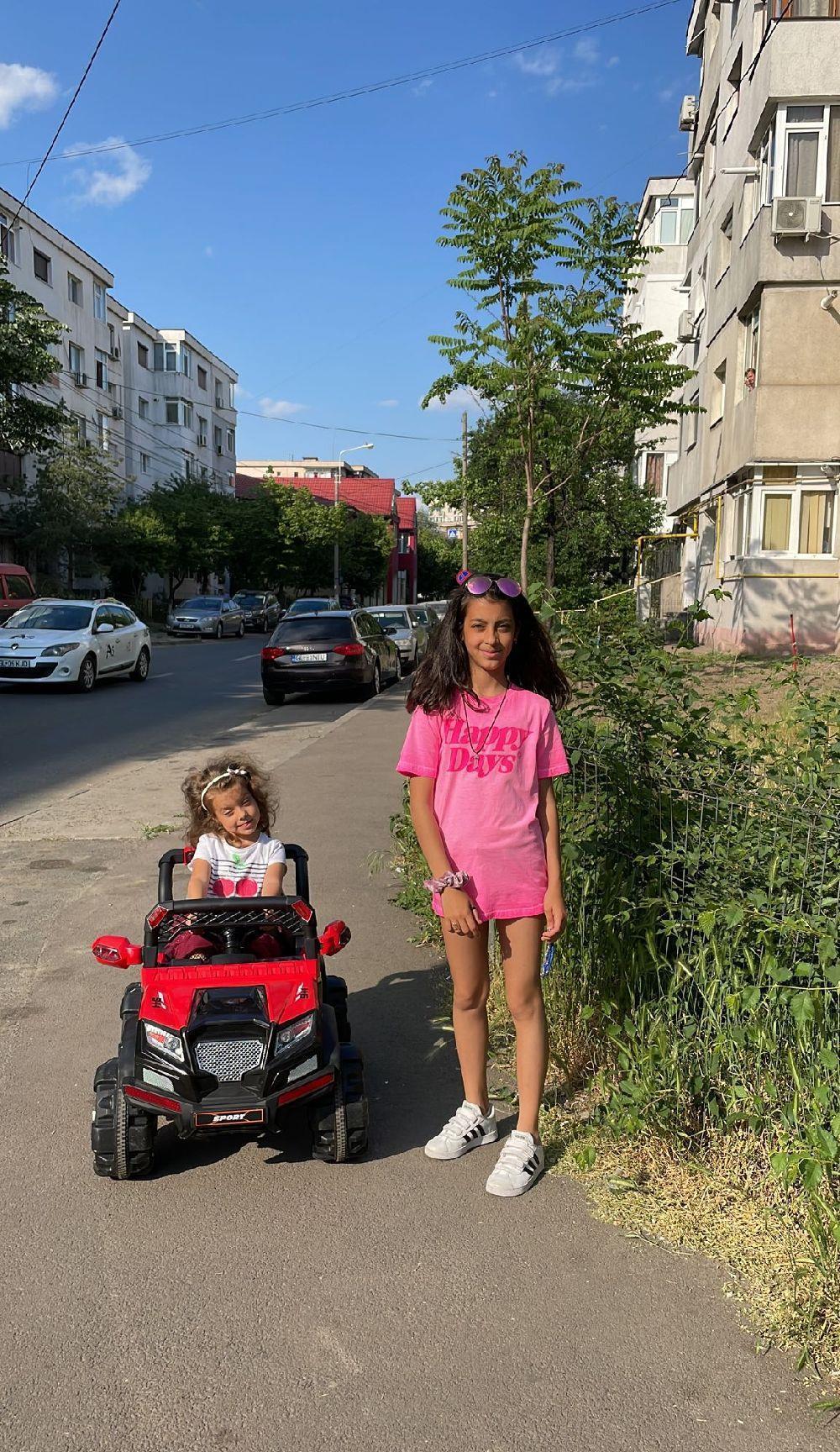 Vând mașină de poliție jeep roșie .Fetița a mers maxim de 10 ori cu ea