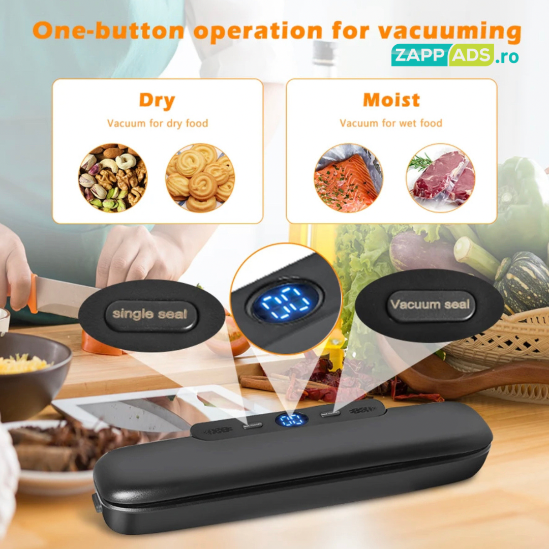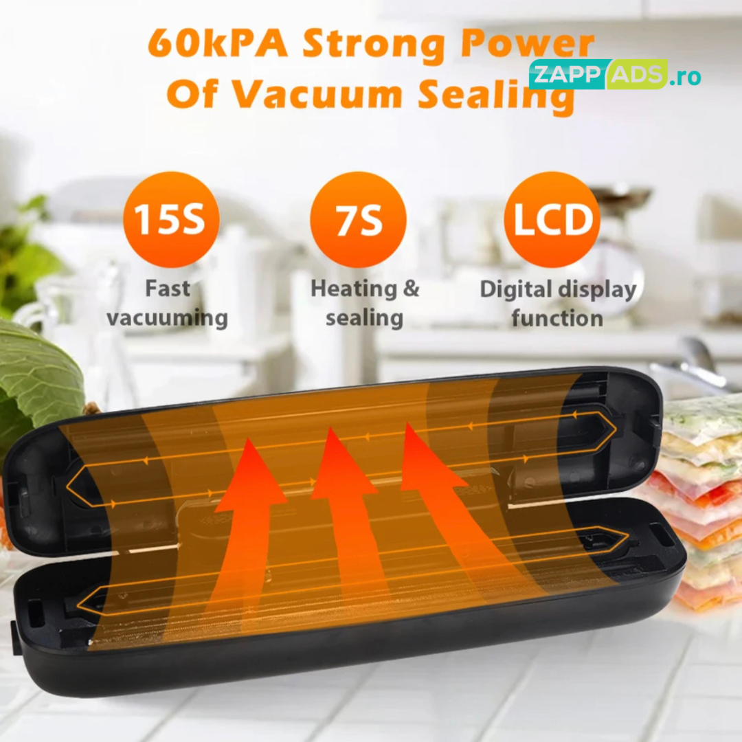 Sigilare și vidare profesionale: Cu aparatul nostru, poți sigila ermetic și vidare alimentele în mod profesionist, eliminând aerul și păstrând prospețimea și aroma intactă. Astfel, vei prelungi durata de păstrare și vei evita risipa de mâncare.