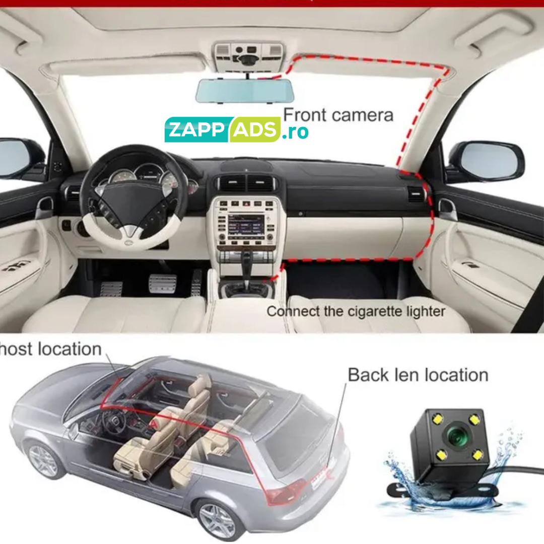 Baterie Încorporată: Produsul vine cu o baterie încorporată, permițându-i să continue înregistrarea chiar și atunci când mașina este oprită.