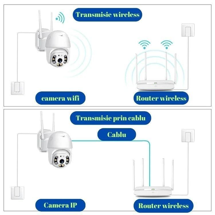 PTZ (Pan-Tilt-Zoom): Permite controlul directiei si zoom-ului camerei pentru a obtine un unghi optim de vizualizare