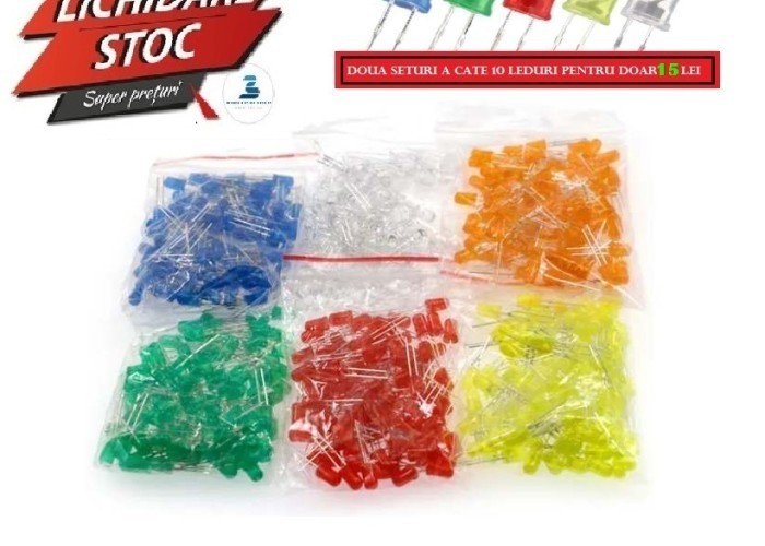 Set 2x10 Led-uri -Verde,Rosu,Portocaliu,Galben,Albastru, Alb -Polonia