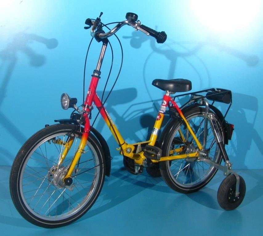 Bicicleta este dotata cu schimbator in butuc spate 3 pozitii, antifurt cu cheie, roti ajutatoare telescopice amortizate cu arc, sonerie, dinam, lumina fata/spate, portbagaj spate.