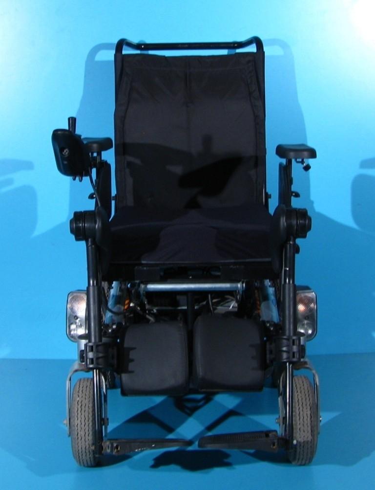 Scaun cu rotile electric, second hand, cu comandă pe joystick, destinat persoanelor cu handicap și celor cu deficiențe locomotorii. Caruciorul electric este proiectat pentru a oferi siguranță, stabilitate și confort, fiind dotat cu sistem de iluminare și semnalizare, ceea ce îi permite utilizarea pe drumurile publice.