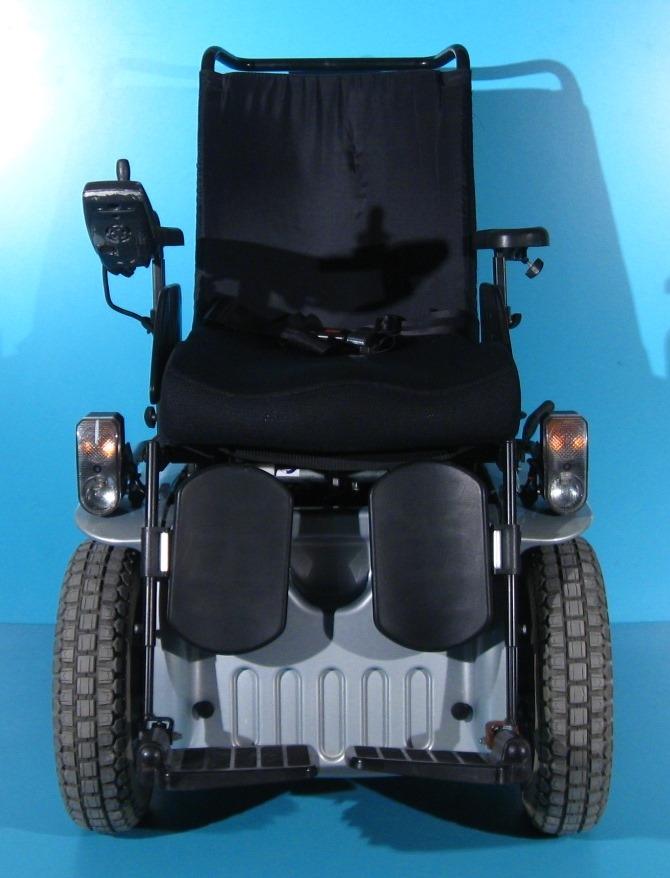 Scaun cu rotile second hand cu comanda pe joystick destinat persoanelor cu handicap si persoanelor cu deficiente locomotorii.
