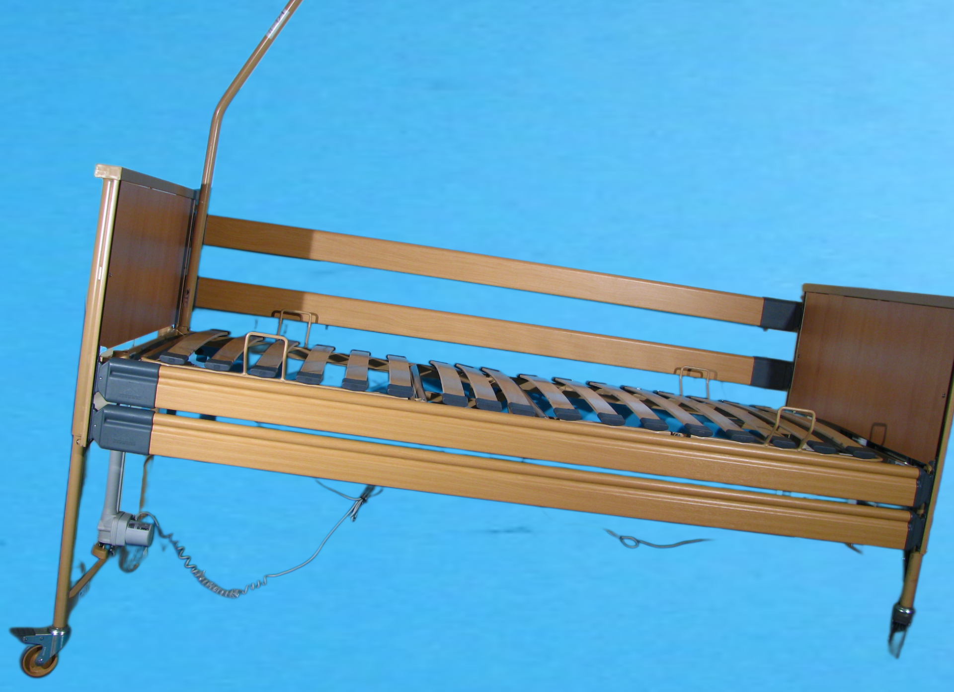 Patul dispune de doua motoare electrice actionate din telecomanda, independente unul fata de altul pentru ridicarea pe verticala a acestuia cat si pentru a aduce patul la o inclinatie de aproximativ 30o