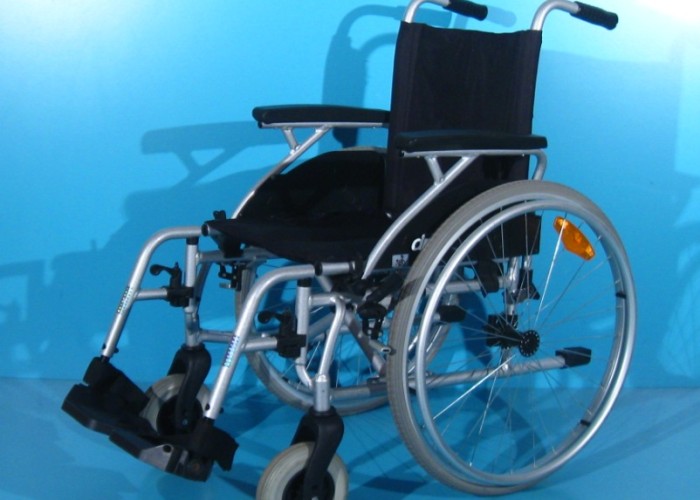 Scaun handicap dotat cu frane pentru pacient.