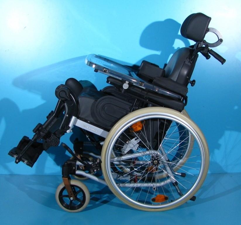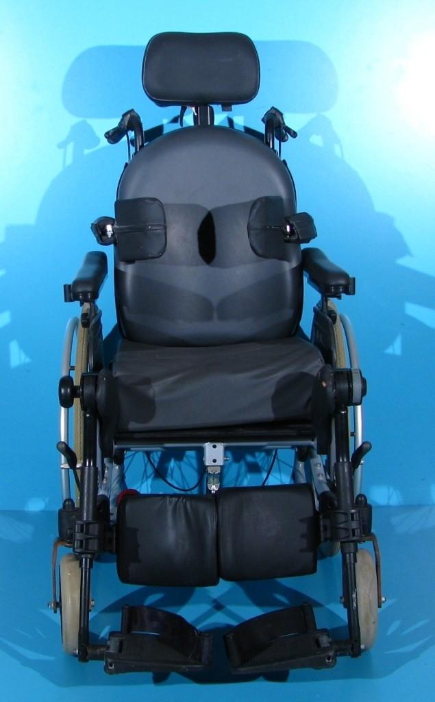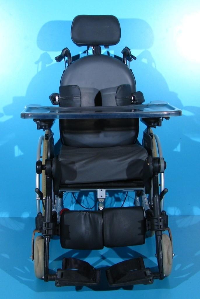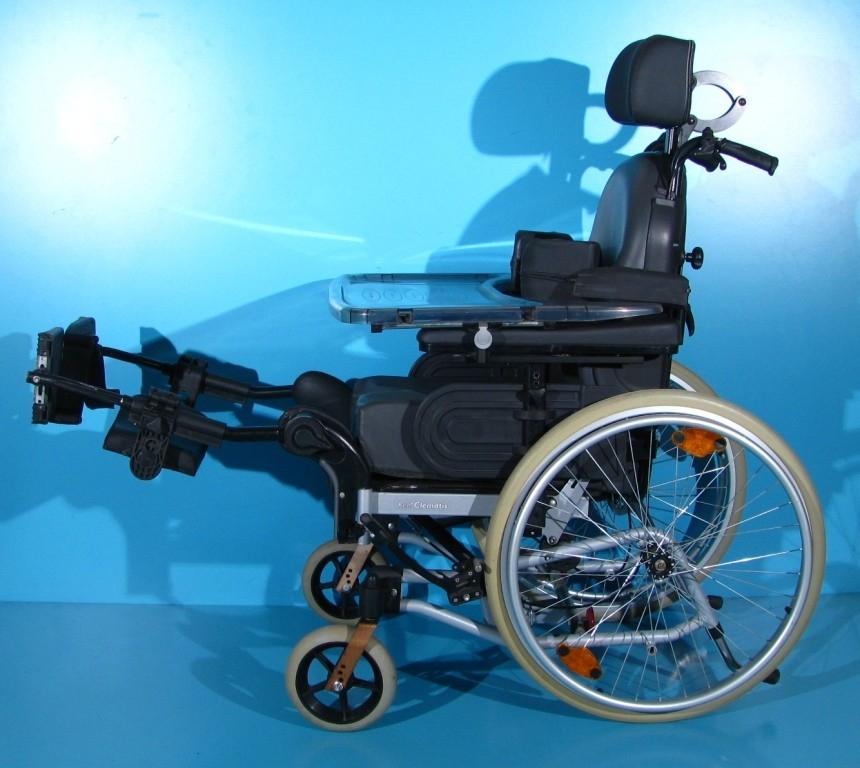 Scaunul este dotat cu tetiera detasabila, reglabila pe inaltime si fata/spate, suporti antirasturnare, masuta detasabila, suport sustinere torace reglabil sus/jos.