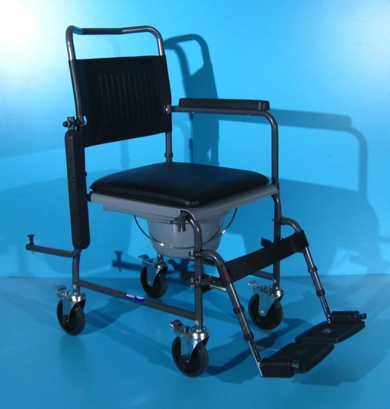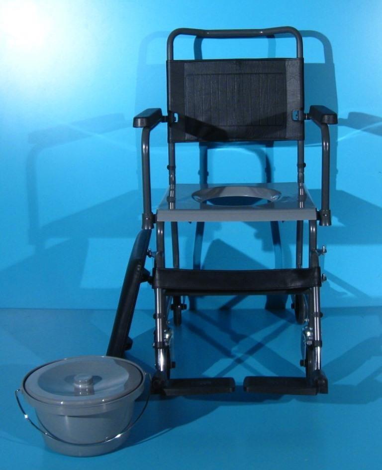 Acest carucior cu wc poate fi folosit in locuinta si ca scaun cu rotile.