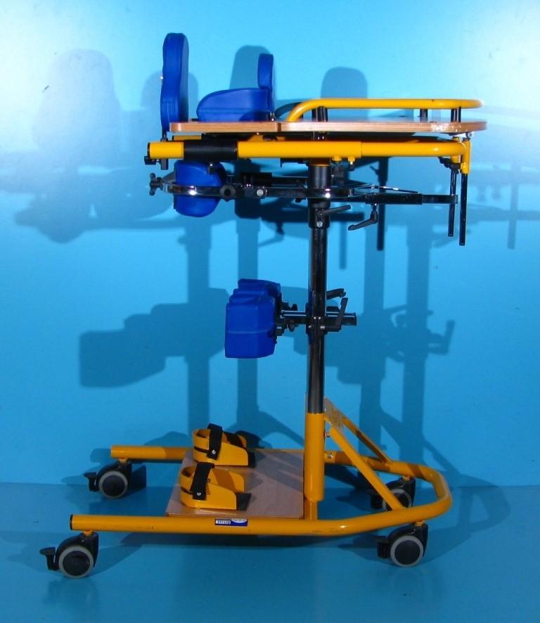 Suport sustinere bazin reglabil stanga/dreapta, fata/spate si pe inaltime. Suportul de sustinere bazin permite asezarea persoanei in verticalizator apoi blocarea sa printr-o siguranta.