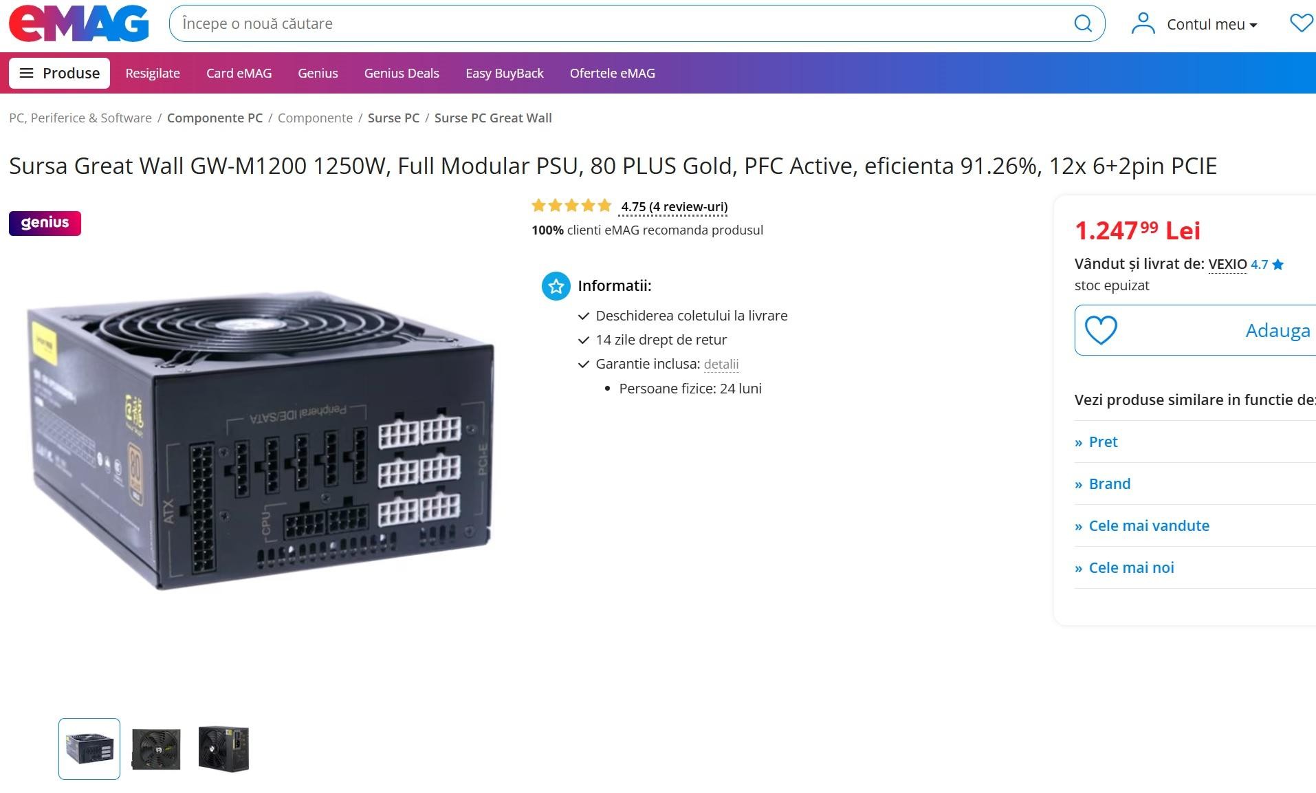 Vand sursa PC ATX - Great Wall GW-EPS1250DA(90+)